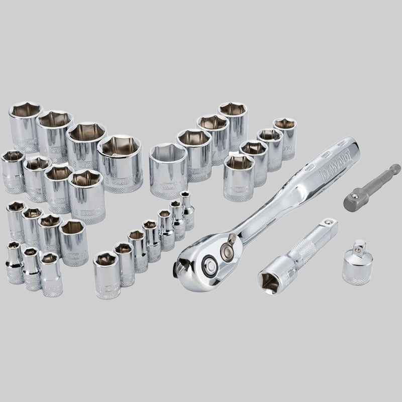 Get dependable performance and professional reliability with the DEWALT 34-Piece Mechanics Socket Tool Kit—engineered for strength, precision, and everyday versatility. Designed for both professional mechanics and DIY users, this comprehensive socket set is crafted from high-quality, durable materials to handle demanding mechanical and maintenance tasks. Precision-engineered sockets ensure a secure fit and efficient torque transfer, helping you work with accuracy and confidence. Supplied in a rugged, stackable carry case, the kit offers easy organization, portability, and convenient storage in workshops, garages, or on-site environments. The compact yet well-organized layout allows quick access to essential tools, saving valuable time on the job. Built with DEWALT’s trusted quality and corrosion-resistant finish, this socket set delivers long-lasting performance for automotive repairs and general mechanical work.