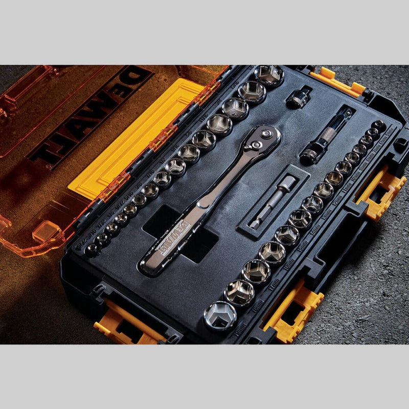 DEWALT 34-Piece Mechanics Socket Tool Kit with Stackable Carry Case