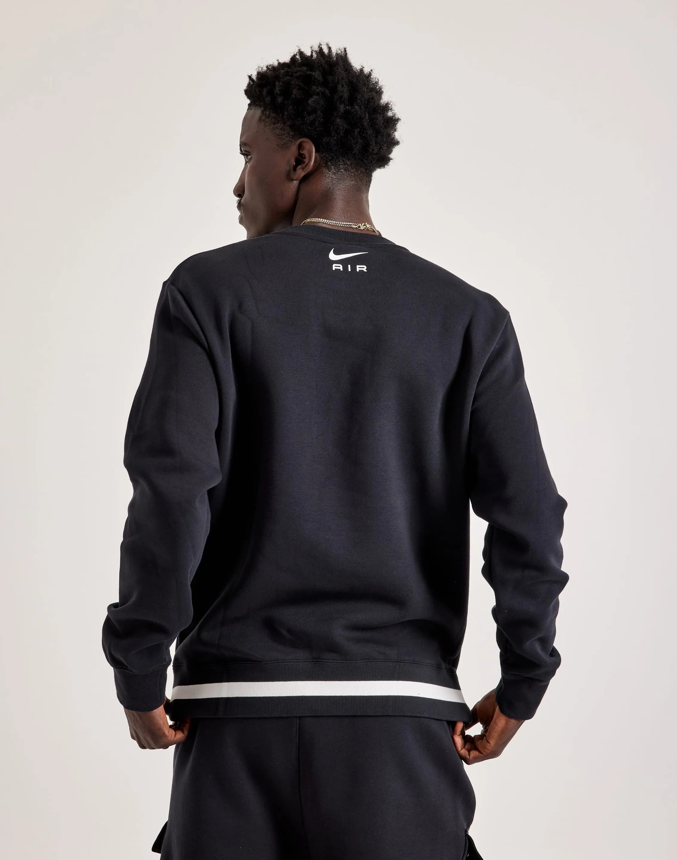 Redefine your street-ready wardrobe with the Nike Air Men's Fleece Crewneck Sweatshirt in a classic Black and White colorway. This sweatshirt features a high-contrast Nike Air logo on the chest, blending a minimalist aesthetic with bold branding. Built from premium brushed-back fleece, it provides a plush, soft feel for all-day warmth. The clean design is accentuated by a white contrast stripe along the ribbed hem, making it an ideal piece to pair with joggers or denim for a sharp, athletic silhouette.