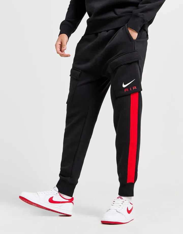 Combine bold aesthetics with everyday functionality in the Nike Air Men's Fleece Cargo Joggers. Featuring a striking contrast of deep black and vibrant University Red side panels, these joggers are engineered for those who want to make a statement. The soft brushed fleece fabric provides exceptional warmth without the bulk, while the utility-driven cargo pockets offer secure storage for your phone and keys. Designed with a modern tapered fit, these pants are the ultimate choice for a high-energy streetwear look.
