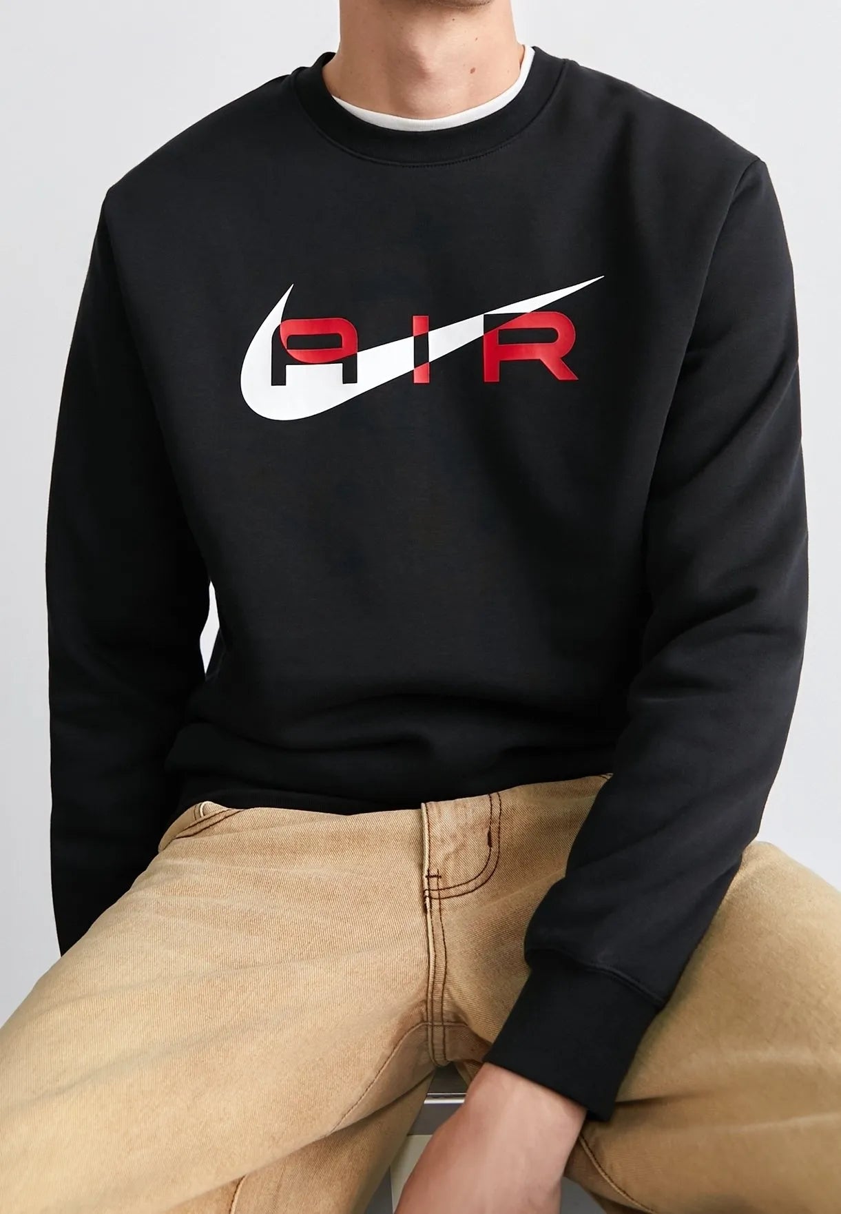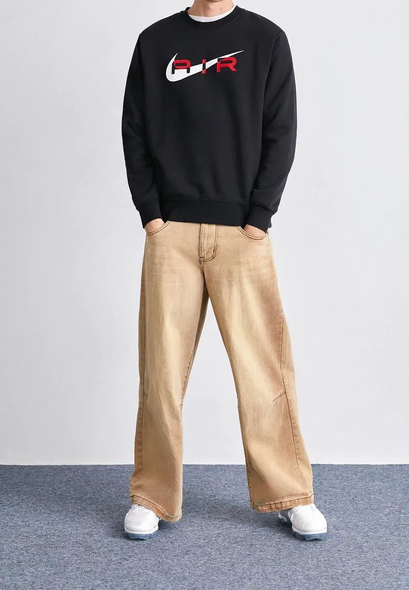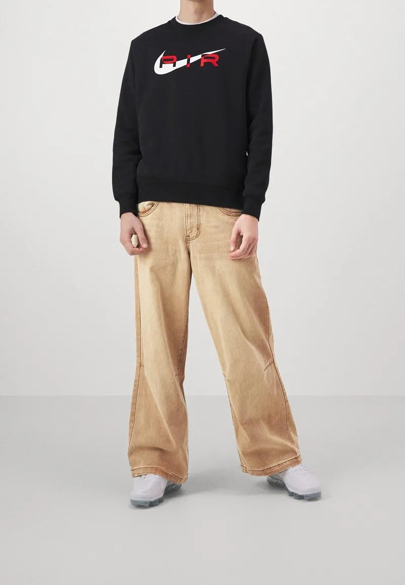Make a bold statement with the Nike Air Men's Fleece Crewneck Sweatshirt, designed for those who live at the intersection of sport and style. This premium sweatshirt features a high-contrast design, with a striking University Red "AIR" graphic layered over the iconic white Nike swoosh on a deep black canvas. Crafted from high-density, soft-brushed fleece, it provides superior warmth and a soft touch against the skin. The classic crewneck silhouette is updated with modern detailing, making it the perfect centerpiece for your streetwear rotation or a coordinated look with matching joggers.