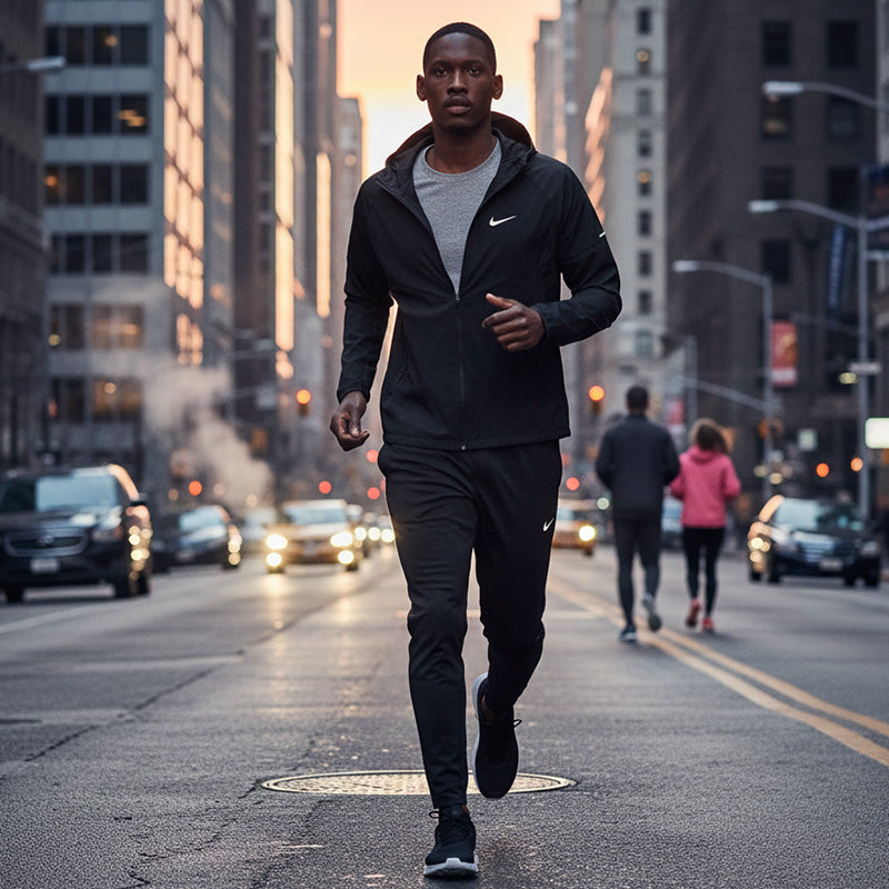 Dominate your urban miles and daily commutes with the Nike Men's Essential Full-Zip Running Tracksuit. Engineered for the modern athlete, this set combines a lightweight, weather-resistant full-zip jacket with high-performance tapered joggers. The sleek "Stealth Black" design features reflective Nike Swoosh accents for enhanced visibility during low-light runs. Crafted with breathable, moisture-wicking technology, it ensures you stay dry and comfortable whether you're hitting the pavement or navigating the city streets. Precision meets style in this ultimate performance duo.
