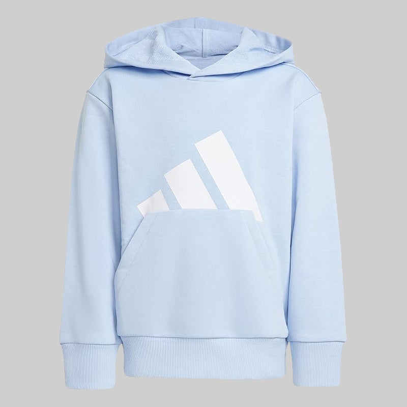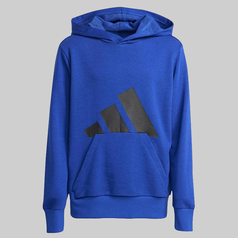 Der Adidas Essentials Big Logo Hoodie für Kinder (Unisex) vereint Komfort, Style und Funktionalität für junge Sportler und den Alltag. Hergestellt aus weichem, strapazierfähigem Material, bietet dieser Hoodie ein kuschelig warmes Tragegefühl – perfekt für kühlere Tage oder Outdoor-Aktivitäten. Die klassische Kapuze schützt zusätzlich vor Wind und Kälte, während die gerippten Bündchen an Ärmeln und Saum für eine bequeme Passform sorgen und die Wärme speichern. Mit dem markanten Adidas-Logo auf der Vorderseite verleiht er einen sportlichen und stylischen Look, der Jungen und Mädchen gleichermaßen begeistert. Der leichte und dennoch robuste Hoodie bietet optimale Bewegungsfreiheit beim Spielen, Sport oder in der Freizeit. Die Kängurutasche ist praktisch und bietet Platz für kleine Gegenstände oder zum Wärmen der Hände. Er ist pflegeleicht, lässt sich gut kombinieren und eignet sich für Schule, Sport und Alltag. Dank seines vielseitigen und praktischen Designs ist der Adidas Essentials Big Logo Hoodie eine unverzichtbare Ergänzung für jeden Kinderkleiderschrank.