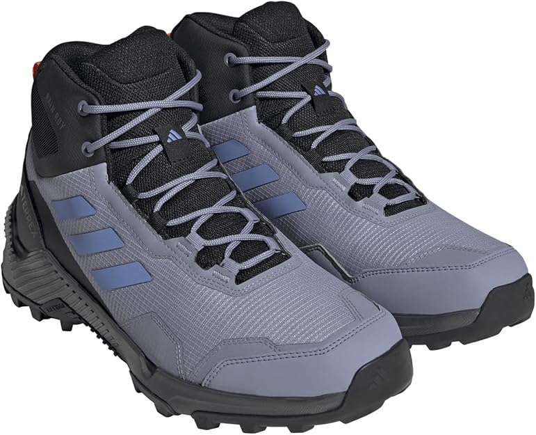 Bezwinge anspruchsvolle Trails und unbeständiges Wetter mit den Adidas Eastrail 2.0 Mid RAIN.RDY Wanderschuhen für Herren. Dank der wasserdichten RAIN.RDY-Technologie halten diese mittelhohen Wanderschuhe deine Füße auch bei Nässe und Schlamm trocken und komfortabel. Das strapazierfähige und atmungsaktive Obermaterial bietet langanhaltenden Schutz und sorgt gleichzeitig für optimale Belüftung, damit deine Füße auch auf langen Wanderungen angenehm kühl bleiben. Die gepolsterte Zwischensohle bietet hervorragende Stoßdämpfung, reduziert Ermüdung und bietet ganztägigen Tragekomfort auf unterschiedlichem Terrain. Die griffige Gummisohle garantiert zuverlässigen Halt auf rutschigem, steinigem oder unebenem Untergrund und erhöht so Stabilität und Sicherheit auf jedem Trail. Das mittelhohe Design bietet zusätzliche Knöchelunterstützung für mehr Leistung und beugt Verletzungen vor. Ein sicheres Schnürsystem sorgt für eine bequeme und individuell anpassbare Passform und stabilisiert deine Füße während deines gesamten Abenteuers. Mit dem Adidas Terrex Branding vereinen diese Schuhe Funktionalität mit einem stylischen Outdoor-Look. Die leichten und dennoch robusten Eastrail 2.0 Mid RAIN.RDY Wanderschuhe sind ideal zum Trekking, Wandern und für Outdoor-Abenteuer bei allen Bedingungen.