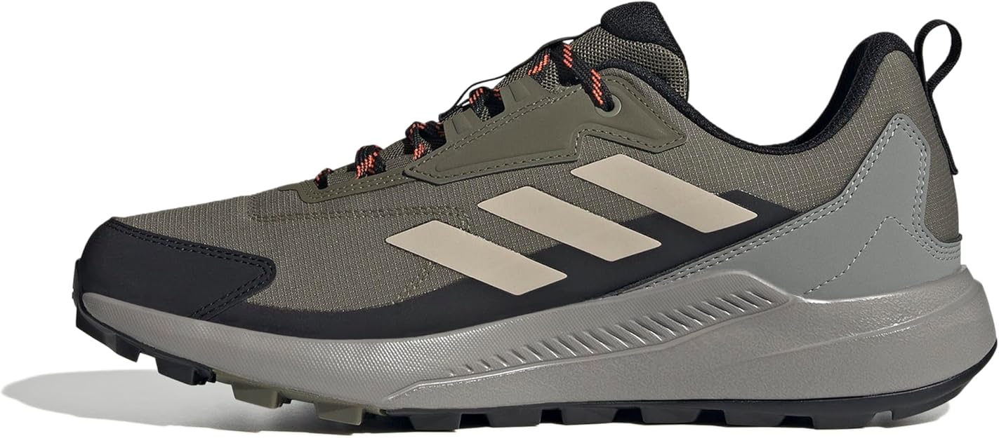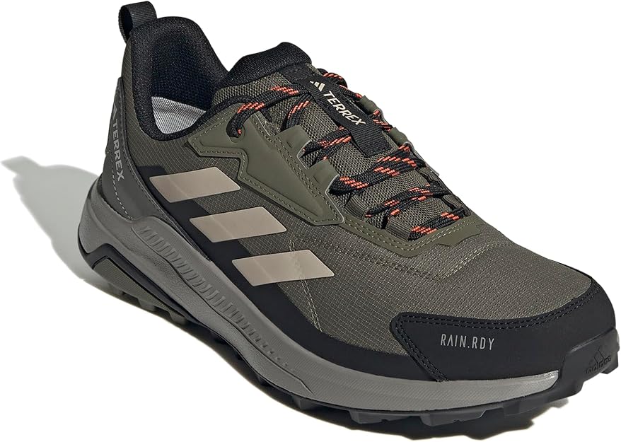 Mit den Adidas Terrex Anylander RAIN.RDY Wanderschuhen für Herren meistern Sie jedes Terrain souverän. Sie wurden für Outdoor-Fans entwickelt, die Wert auf Langlebigkeit und Performance legen. Dank der wasserdichten RAIN.RDY-Technologie bleiben Ihre Füße auch bei nassem und unbeständigem Wetter trocken und komfortabel. Die leichte und dennoch robuste Konstruktion bietet Stabilität und Halt für lange Wanderungen, anspruchsvolles Gelände und alltägliche Outdoor-Abenteuer. Die griffige Gummisohle sorgt für hervorragende Traktion auf nassen, rutschigen oder unebenen Oberflächen, reduziert die Rutschgefahr und erhöht die Sicherheit. Das atmungsaktive Obermaterial gewährleistet optimale Belüftung, verhindert Überhitzung und hält Ihre Füße den ganzen Tag über angenehm kühl. Die gepolsterte Zwischensohle bietet reaktionsfreudigen Komfort und absorbiert Stöße beim Gehen und Klettern. Ein sicheres Schnürsystem garantiert einen festen Sitz und gibt Ihren Füßen optimalen Halt. Das Adidas Terrex-Branding verleiht den Schuhen einen stylischen Touch und vereint Funktionalität mit ikonischem, sportlichem Design. Die robusten, funktionalen und vielseitigen Anylander RAIN.RDY Wanderschuhe sind ideal zum Trekking, Wandern und für Outdoor-Aktivitäten bei jedem Wetter.