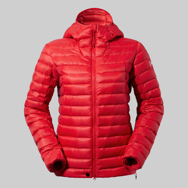 Die Berghaus MTN Seeker Damen-Kapuzenjacke in Rot/Rot ist ideal für Frauen, die bei Outdoor-Abenteuern zuverlässigen Schutz, Komfort...