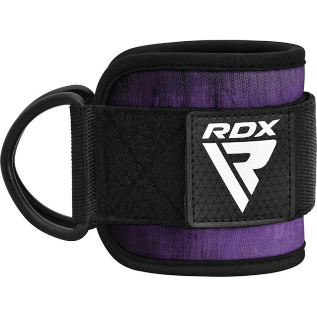 The RDX A4 Ankle Straps are designed to enhance your lower body training by providing secure and comfortable ankle support during cable machine exercises. Made with high-quality neoprene padding, these straps offer superior comfort and prevent irritation while performing glute kicks, hip abductions, leg curls, and other resistance movements. The heavy-duty stainless steel D-rings attach effortlessly to cable machines, ensuring a strong and stable connection for every rep. With an adjustable Velcro closure, the A4 straps deliver a customized fit for all ankle sizes, keeping them firmly in place throughout your workout. Their durable construction ensures long-term reliability, even during intense training sessions. Lightweight and easy to carry, these ankle straps are perfect for gym use or home cable systems. Whether you're targeting your glutes, hamstrings, or hips, the RDX A4 straps help you achieve better isolation, improved control, and more effective muscle engagement, making them an essential accessory for serious lower-body training.