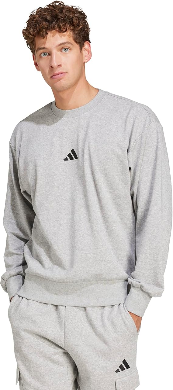 The Adidas Essentials Feelcozy French Terry Sweatshirt for Men is designed to provide ultimate comfort, warmth, and casual style. Crafted from soft French terry fabric, it offers a cozy feel against the skin, making it perfect for lounging, casual outings, or light workouts. The relaxed fit allows for easy layering over t-shirts or under jackets, providing versatility for different seasons. Ribbed cuffs and hem ensure a snug fit, keeping warmth in while maintaining a clean silhouette. Featuring the iconic Adidas branding, this sweatshirt delivers a classic, sporty look suitable for any casual wardrobe. Lightweight yet warm, it offers freedom of movement without feeling bulky. The durable fabric ensures long-lasting wear and easy care, maintaining its softness and shape after repeated washes. Perfect for men who value both comfort and style, the Adidas Essentials Feelcozy Sweatshirt is an essential piece for everyday wear.