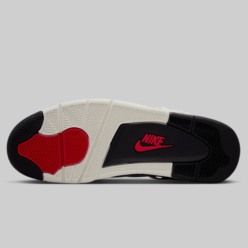Elevate your sneaker game with the Air Jordan 4 "Flight Club" in Sail and Black, a masterpiece of heritage and modern street style. This edition pays homage to the legendary "Flight" DNA, featuring a premium Sail-toned leather upper contrasted with sharp Black accents on the iconic "wings," lace eyelets, and heel tabs. The signature visible Air-Sole unit in the heel provides timeless cushioning, while the breathable mesh side panels ensure classic AJ4 comfort. Whether you're a hardcore collector or a style enthusiast, the Flight Club 4s deliver a sophisticated aesthetic that stands out on the streets and the court alike.