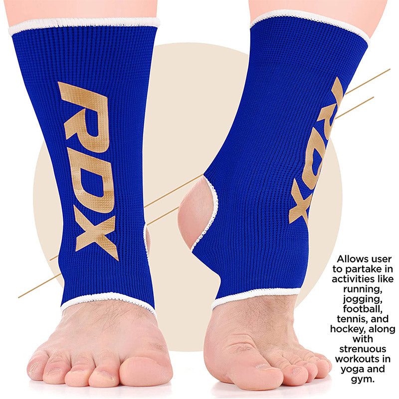 An extra strong and super stretchy ankle support for athletes. Ideal for preventing injuries and essential for Tendovaginitis or sprain recovery. This high tech ankle brace is the perfect hybrid of stretch and strength, giving boxers and MMA fighters a product that lasts and lasts, whilst always retaining its shape. A batwing design hugs the ankle, a special elastic gives enhanced support and security, and the quick slip-on feature makes it so easy to use. Ideal for slipping into your kitbag and can be machine washed. (SMALL & MEDIUM SIZES RECOMMENDED FOR UP TO 14 YEARS OF AGE)