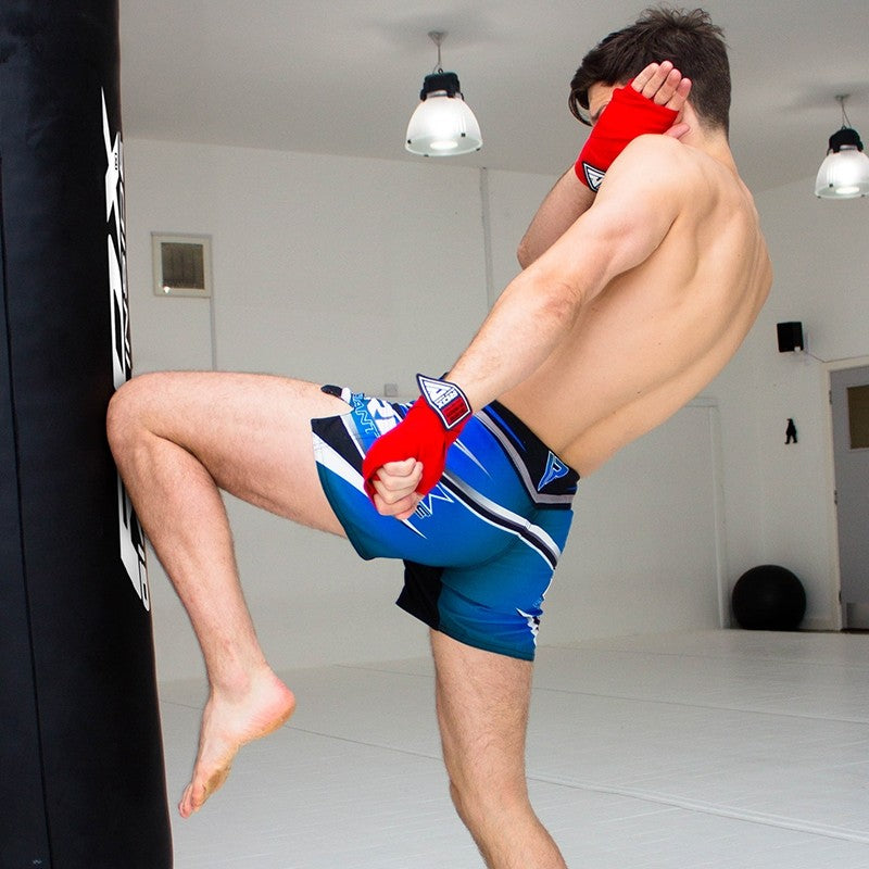 Designed to bring out the beast in you. These Patent Pending MMA shorts can be used for Jiu-Jitsu, Muay-Thai, Boxing, or any training activity for that matter. Polyester construction with heavy-duty microfibers comes together in these mid-length shorts that incorporates a Lycra stretch panel crotch for flexibility and comfort. Silicon Printing on the rear-inner feels pleasant against the body while creating traction for a zero-slip grip. Anatomic cuts ensure ease of movement without any hampering while the 4-way stretch fabric with anti-microbial treatment in the waistband and interlocking drawstrings promise a comfy, immovable fit. Get in there and begin dominating the game in fight gear unlike any other.