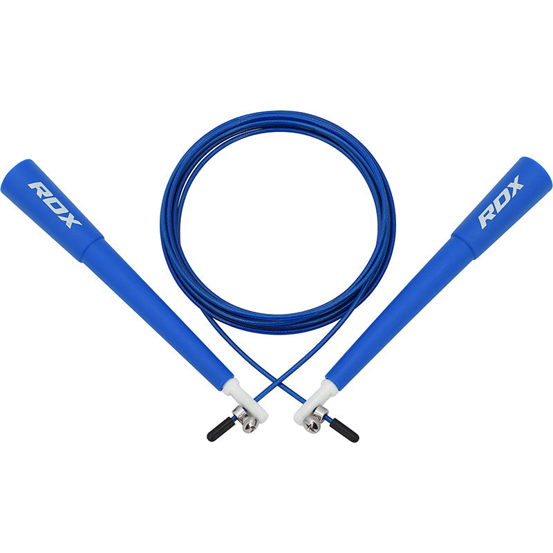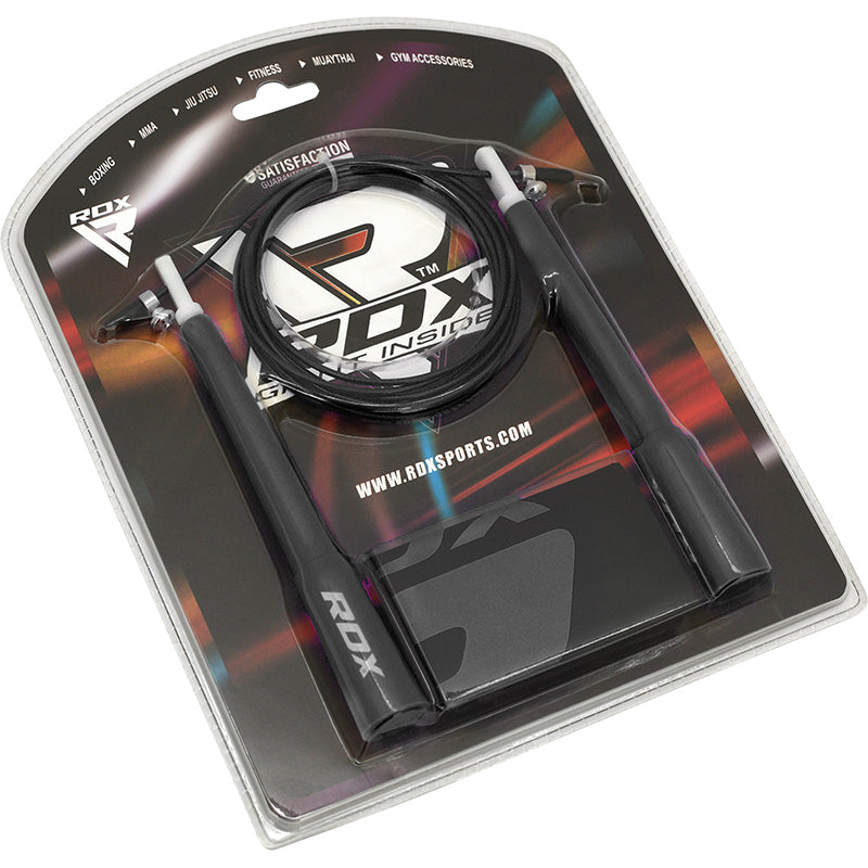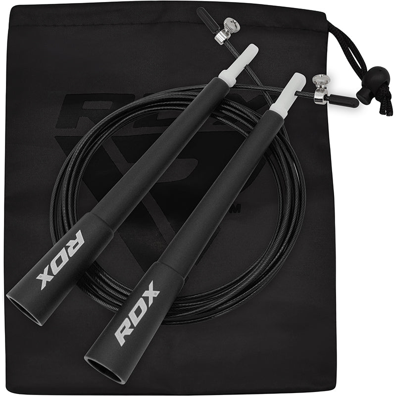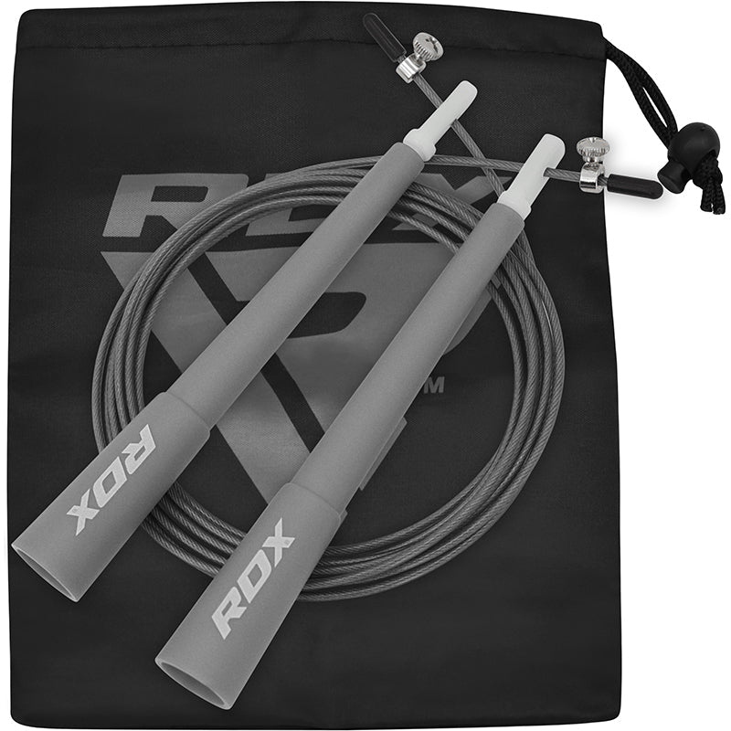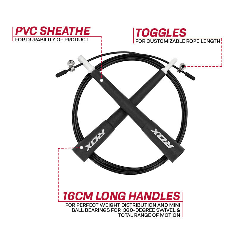 If you're looking to add variety to your workouts, look no further than the RDX Skipping Rope. Made with a 10 foot, 2.4mm thick steel wire sheathed in durable PVC, the rope is fitted with a pair of toggles to customize rope length to anyone's needs. The polymer handles are 16cm long and designed for perfect weight distribution. The metal tops are installed with mini balls bearings for 360-degree swivel and total range of motion, so you can skip with more speed and accuracy for footwork training, cardio or even stamina building. Moreover, each handle has a removable plastic cap at the bottom to add weights. The rope comes with a waterproof nylon bag for accessible, tangle-resistant storage.