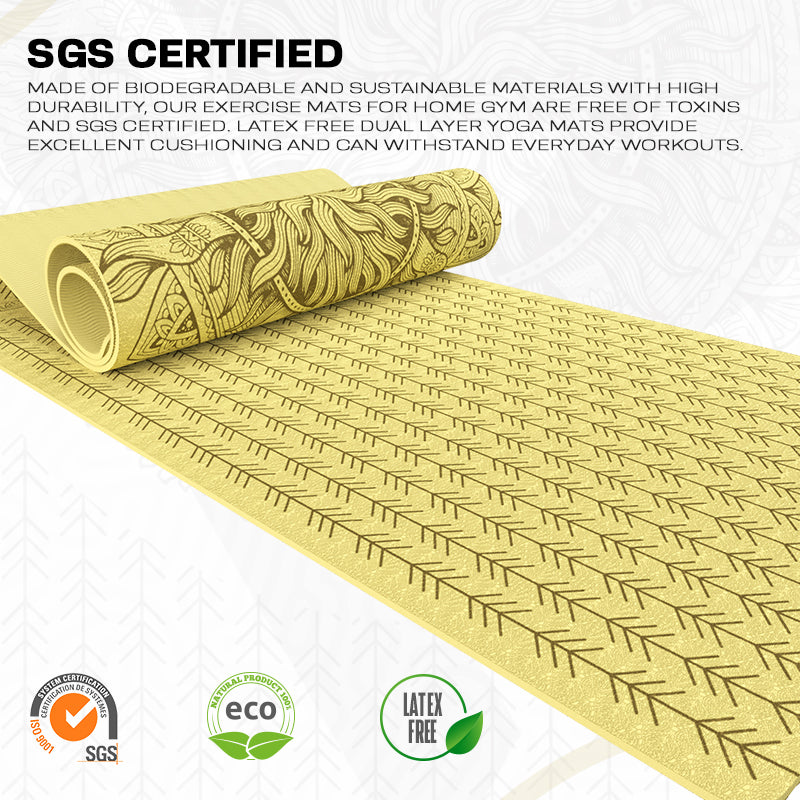 Choose the design to match your style. Being lightweight and portable allows you to carry our workout mats anywhere for a quick workout. Bio-degradable high resilience yoga mat TPE comes with a carry bag & strap and exercise manual for convenient use.