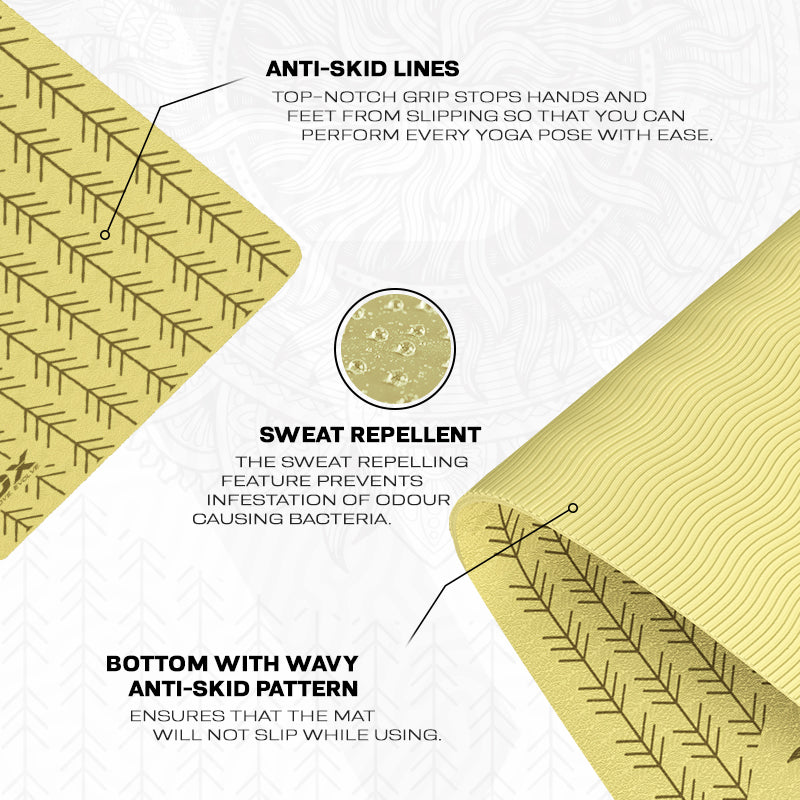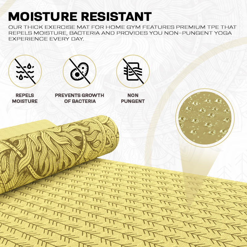 Our workout mats are made of premium TPE that is non-absorbent, water-resistant, and non-pungent and accumulation of dust and sweat.