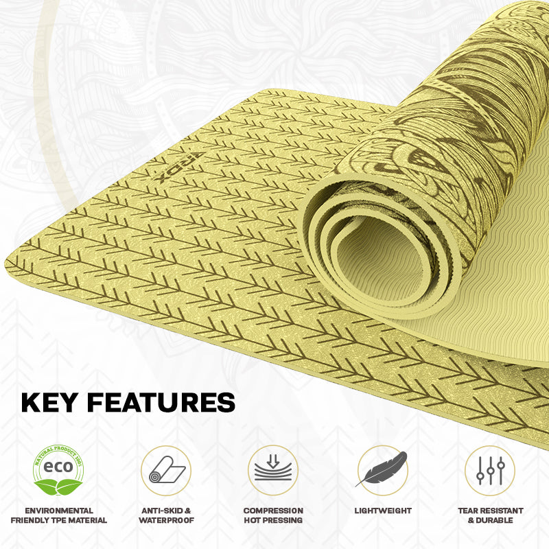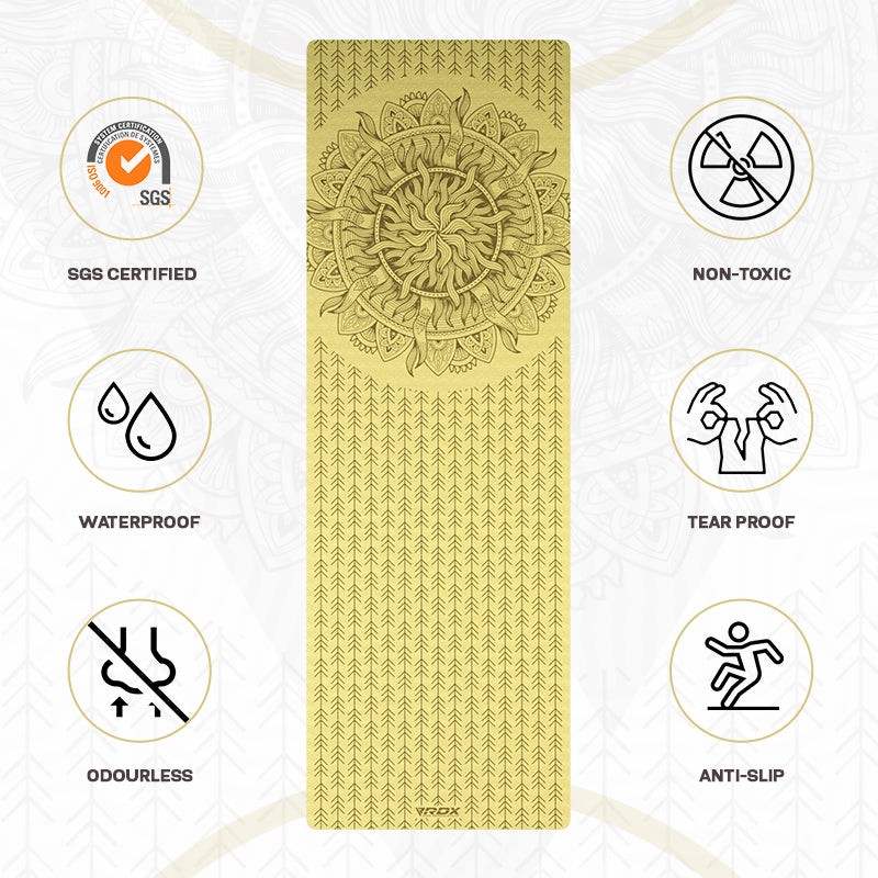 Embark on your yogic journey with gratitude and fulfilment by aligning your energy to discover perfect balance of mind, soul and body. RDX's TPE Yoga Mats are SGS certified and free of toxins. Our extremely soft, non-slip texture, biodegradable TPE yoga mats offer comfort and security at an affordable, budget price. High density, fine-textured foam top surface of 6mm thickness provides higher rebound resilience to these mats to protect joints and facilitate all types of workouts yoga, Pilates, physio or toning exercises.