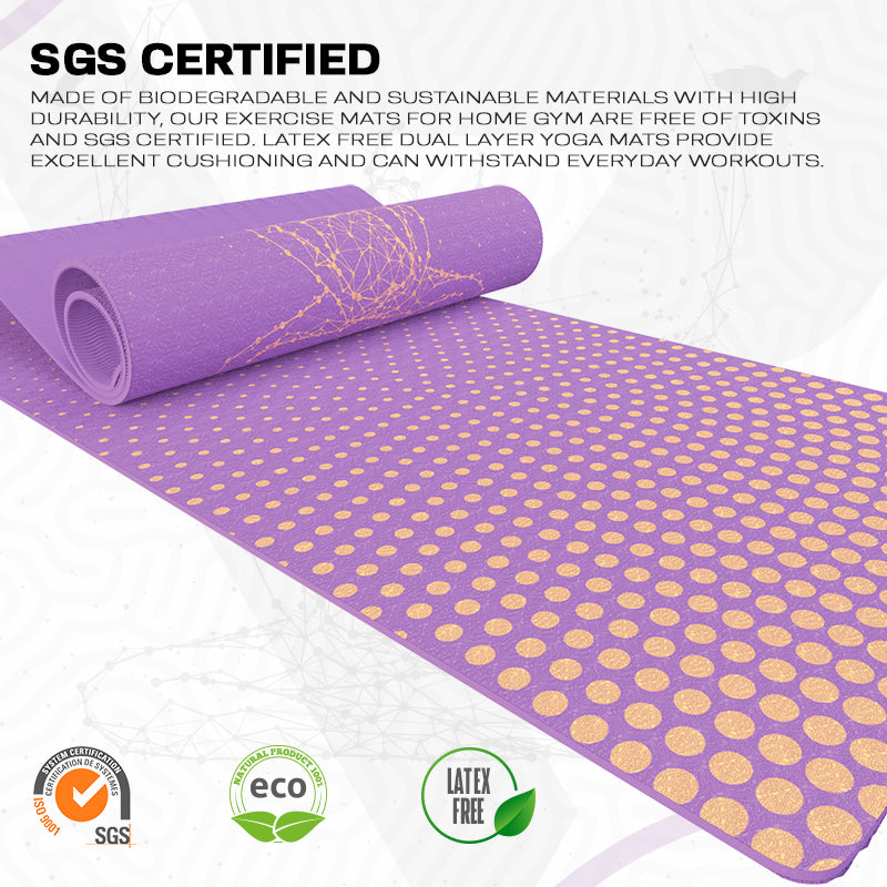 Bio-degradable high resilience yoga mat TPE comes with a carry bag & strap and exercise manual for convenient use. Choose the design to match your style. Being lightweight and portable allows you to carry our workout mats anywhere for a quick workout.
