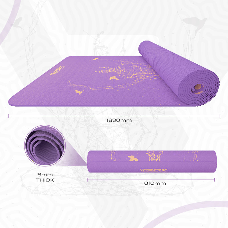 Our extremely soft, non-slip texture, biodegradable TPE yoga mats offer comfort and security at an affordable, budget price. Embark on your yogic journey with gratitude and fulfilment by aligning your energy to discover perfect balance of mind, soul and body. RDX's TPE Yoga Mats are SGS certified and free of toxins. High density, fine-textured foam top surface of 6mm thickness provides higher rebound resilience to these mats to protect joints and facilitate all types of workouts yoga, Pilates, physio or toning exercises.