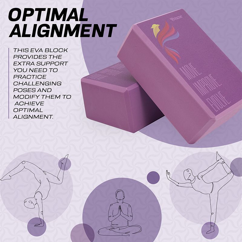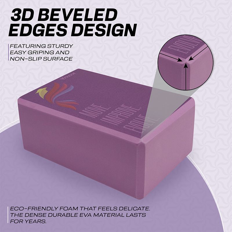 Cultivate healthy energy flow by bringing balance and alignment in your form and everyday life with the RDX EVA Foam yoga blocks. Made for beginner and intermediate yogis alike, this sturdy foam yoga block provides strong support for your bridge poses, and comfortable lift to perfect your alignment in the crescent moon stance. Add this optimally sized yoga block (23*15*9.8cm) to your home gym essential and yoga accessories for increased versatility in your practice.Sturdy, high-density foam yoga block delivers exceptional strength to help prolong your poses and holds its position even under considerable weight. Non-slip textured surface offers superior traction for the stability and balance needed in your practice to maintain control of movement and improve alignment. Slightly bevelled edges provide a firm and easy-grip surface so you can confidently conquer even the more advanced yoga poses. Get additional help by looking up poses from the included exercise manual. Lightweight and compact design facilitates block-assisted yoga practice anywhere whether it's in your room or under the shade of a giant oak tree. It also retains shape after all sorts of compressions for long-lasting durability. Eva foam material offers a non-abrasive surface that increases comfort while you flex and stretch out during practice, or ease-into restorative poses. Use the yoga brick under your hands and feet to deepen stretches, improve flexibility and modify poses to match your difficulty level. It also serves as meditation cushion under your head and torso to relax and ensure proper alignment. The soft block is gentler on the joints and muscles during arm balances and backbends, which reduces the strain on muscles and the chances of injury. Choose the yoga brick design that matches your aesthetics to energize your routine and turn functional yoga into art.