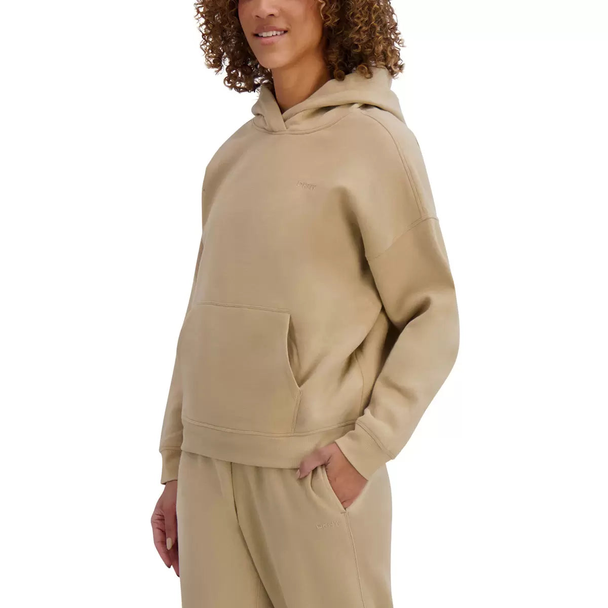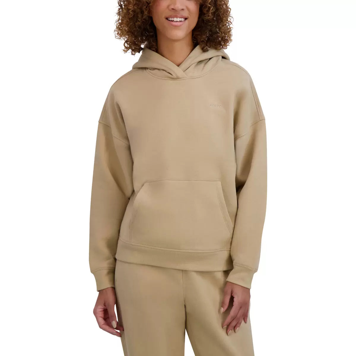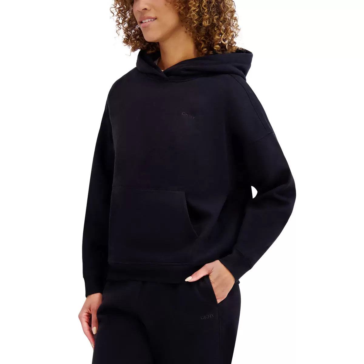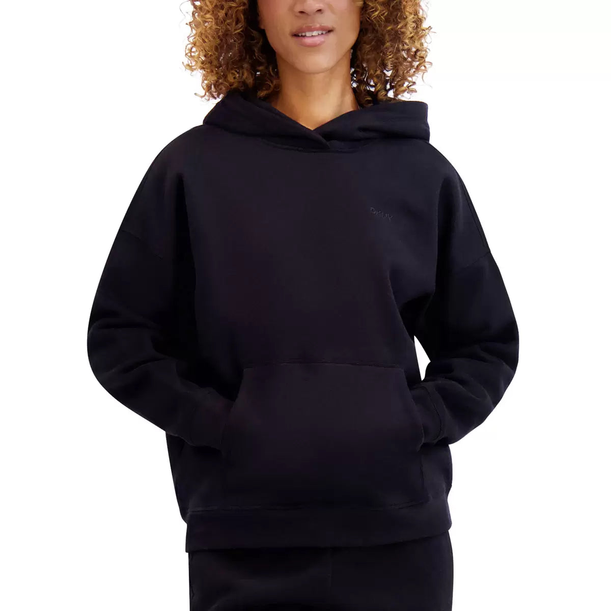 The DKNY Sport Women’s Fleece Hoodie is designed to provide warmth, comfort, and effortless style for everyday wear. Made from premium soft fleece, it offers a cozy and gentle feel against the skin while keeping you warm during cooler weather. The hoodie features a relaxed fit, allowing for easy layering over activewear, t-shirts, or casual outfits. A hood with adjustable drawstrings ensures added protection against wind or light rain, while the front kangaroo pocket provides convenient storage for small essentials or a place to keep your hands warm. Its ribbed cuffs and hem help retain heat and maintain a comfortable fit throughout the day. Lightweight yet insulating, this hoodie is perfect for workouts, lounging at home, running errands, or casual outings. The classic DKNY Sport branding adds a stylish, sporty touch, making it easy to pair with leggings, joggers, or jeans. Durable stitching and high-quality fabric ensure long-lasting performance, even after repeated washes. Combining functionality, comfort, and modern design, the DKNY Sport Women’s Fleece Hoodie is a versatile wardrobe essential.