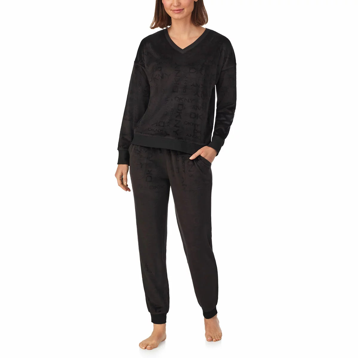 The DKNY Women’s Lounge Set is designed to deliver exceptional comfort, effortless style, and everyday relaxation. Crafted from soft, breathable fabric, this set feels gentle on the skin and ensures all-day ease, whether you’re unwinding at home, running quick errands, or enjoying a cozy evening in. The top features a relaxed fit that allows natural movement, while the matching bottoms offer a comfortable elastic waistband for a secure yet flexible feel. Lightweight yet cozy, the set provides the perfect balance of comfort and warmth without feeling heavy. High-quality stitching ensures long-lasting durability and maintains the shape of the outfit even after repeated washes. With its stylish DKNY branding and modern silhouette, the lounge set brings a polished look to your casual wardrobe. Versatile and easy to style, it can be worn as a complete outfit or mixed and matched with other wardrobe pieces. Combining luxury, practicality, and comfort, this lounge set is an essential for women who appreciate chic yet laid-back fashion.