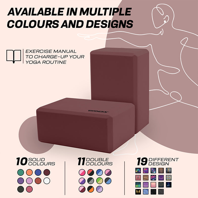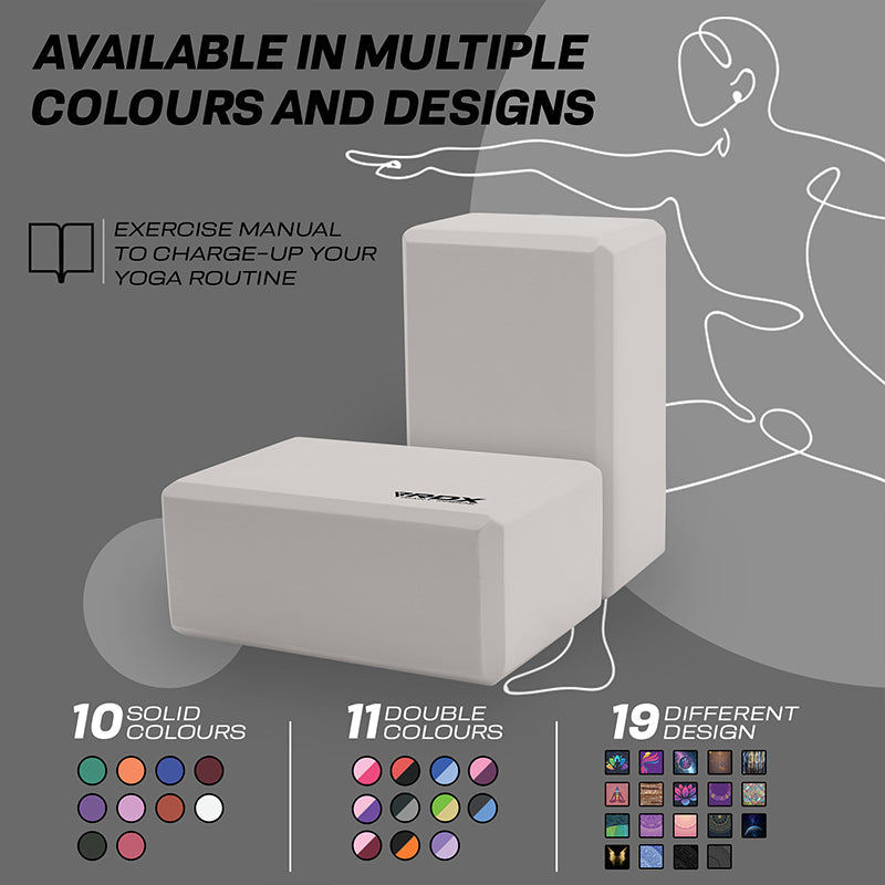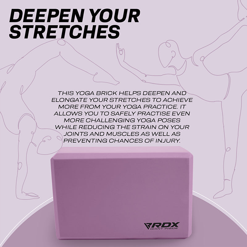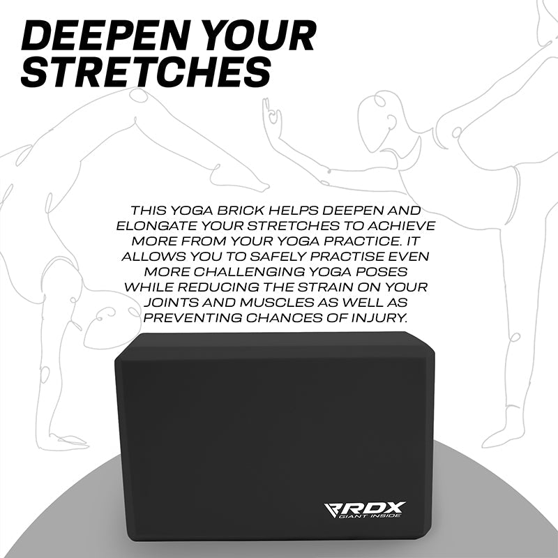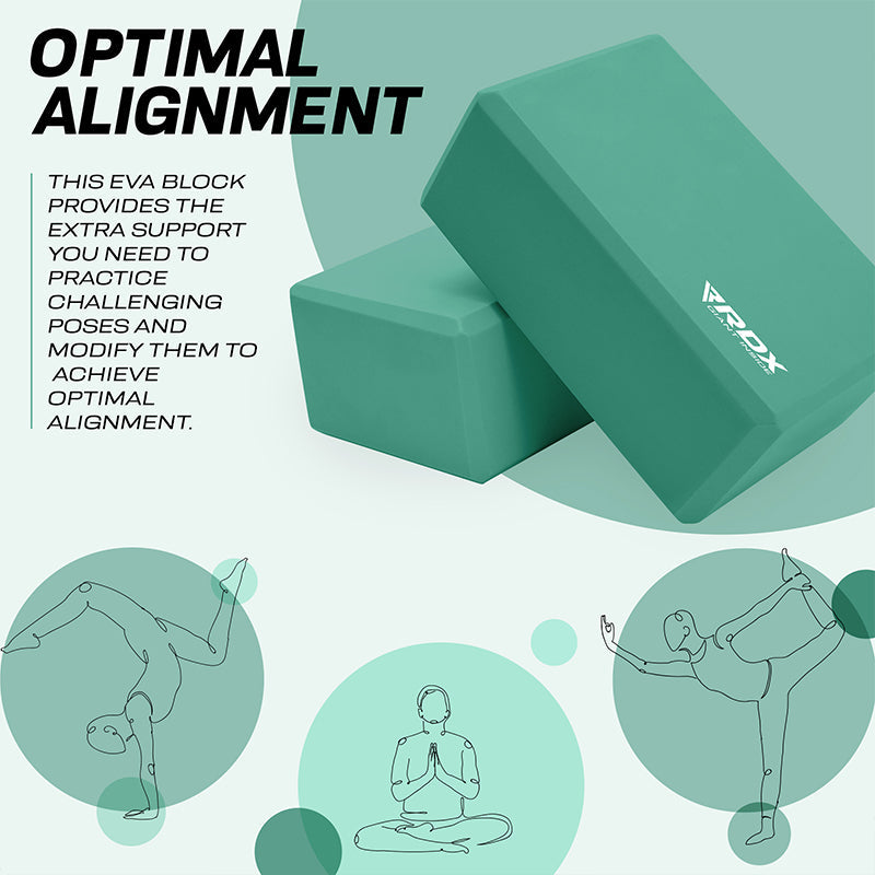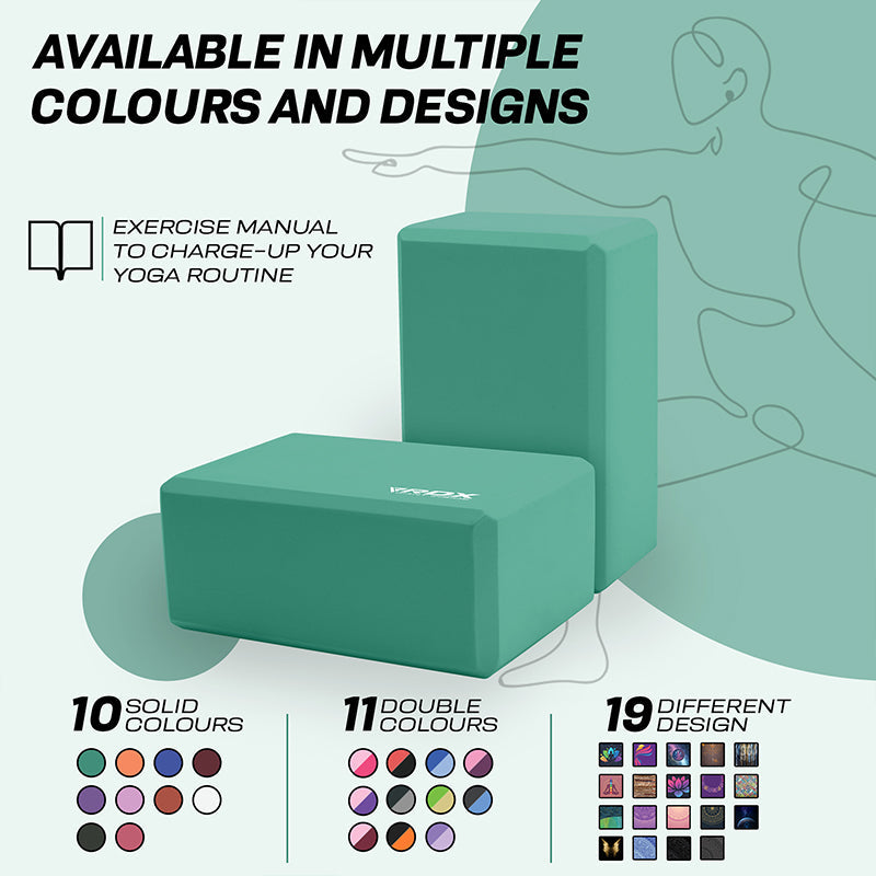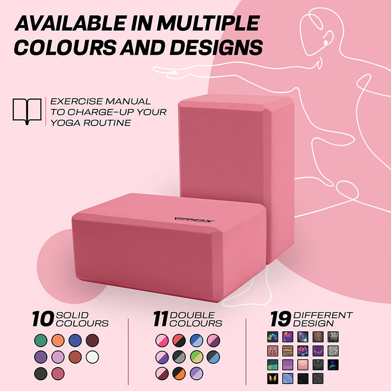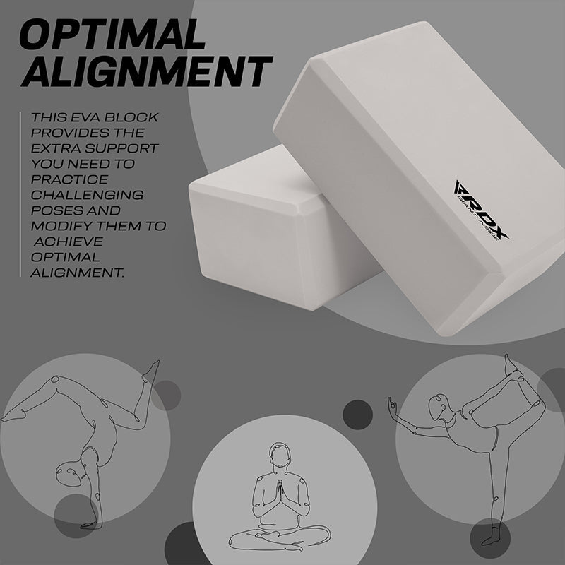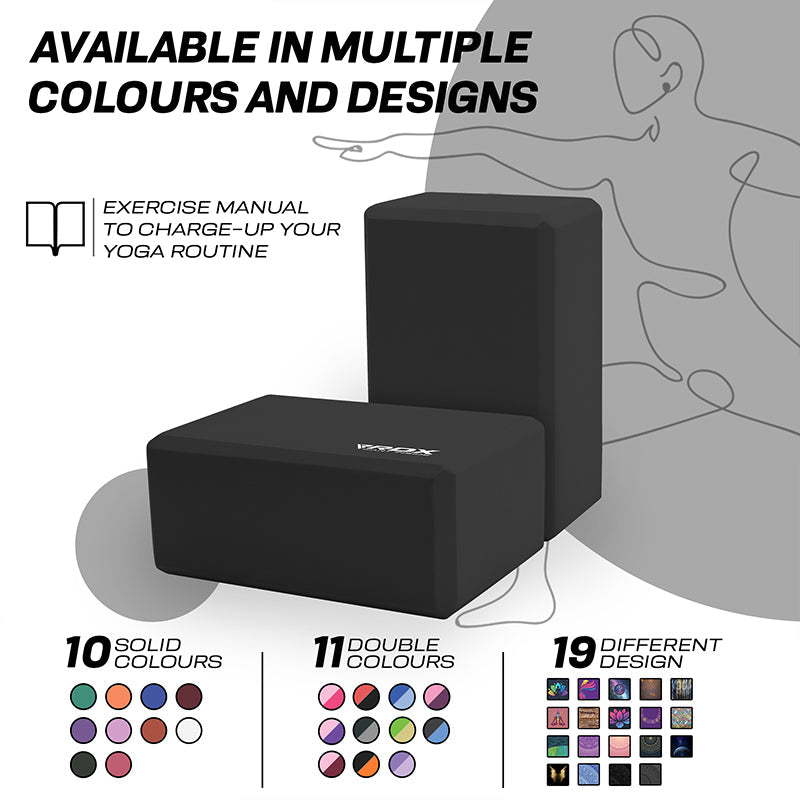 Cultivate healthy energy flow by bringing balance and alignment in your form and everyday life with the RDX EVA Foam yoga blocks. Add this optimally sized yoga block (23*15*9.8cm) to your home gym essential and yoga accessories for increased versatility in your practice. Made for beginner and intermediate yogis alike, this sturdy foam yoga block provides strong support for your bridge poses, and comfortable lift to perfect your alignment in the crescent moon stance.Lightweight and compact design facilitates block-assisted yoga practice anywhere whether it's in your room or under the shade of a giant oak tree. Sturdy, high-density foam yoga block delivers exceptional strength to help prolong your poses and holds its position even under considerable weight. It also retains shape after all sorts of compressions for long-lasting durability. Eva foam material offers a non-abrasive surface that increases comfort while you flex and stretch out during practice, or ease-into restorative poses. Use the yoga brick under your hands and feet to deepen stretches, improve flexibility and modify poses to match your difficulty level. It also serves as meditation cushion under your head and torso to relax and ensure proper alignment. The soft block is gentler on the joints and muscles during arm balances and backbends, which reduces the strain on muscles and the chances of injury. Non-slip textured surface offers superior traction for the stability and balance needed in your practice to maintain control of movement and improve alignment. Slightly bevelled edges provide a firm and easy-grip surface so you can confidently conquer even the more advanced yoga poses. Get additional help by looking up poses from the included exercise manual.Pick the colour that matches your style to energize your routine and turn functional yoga into art.