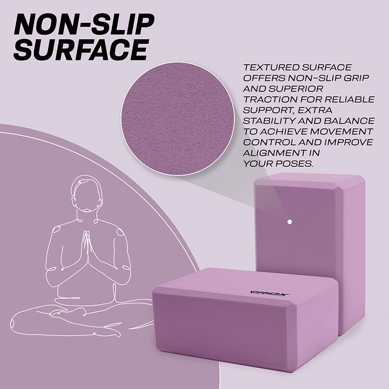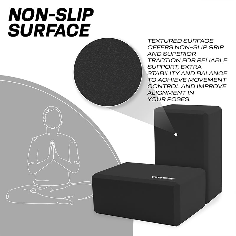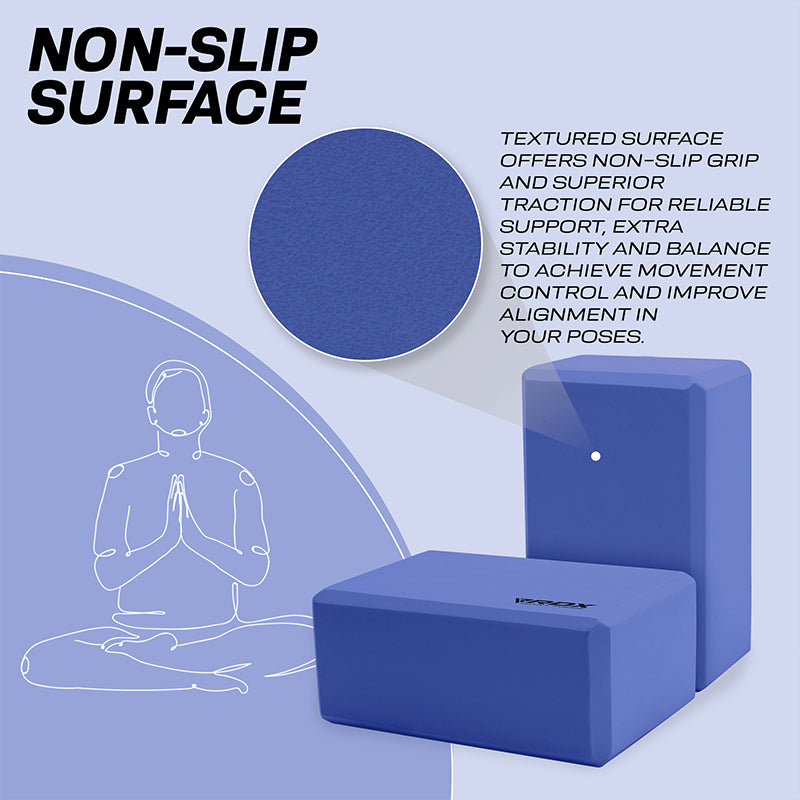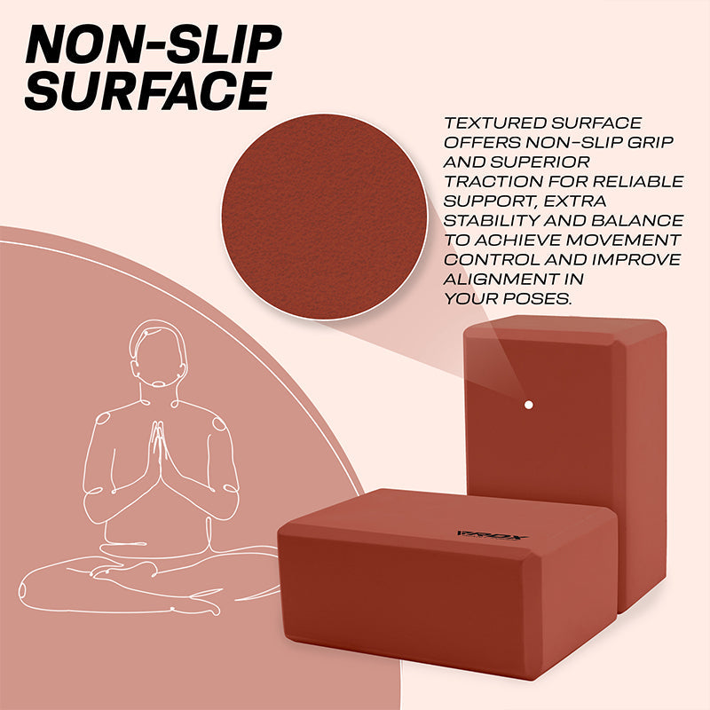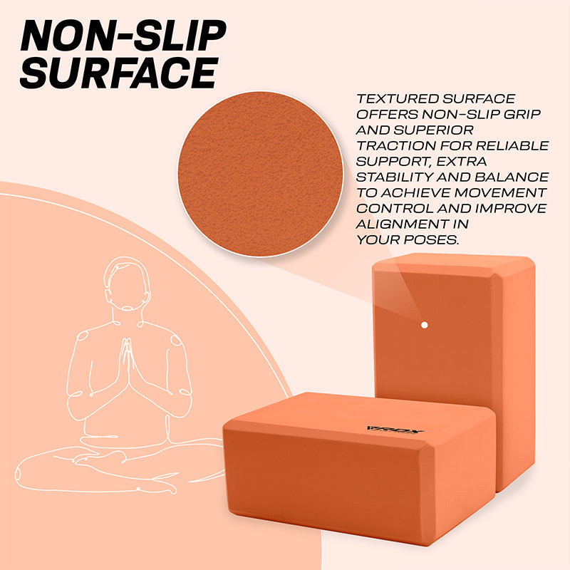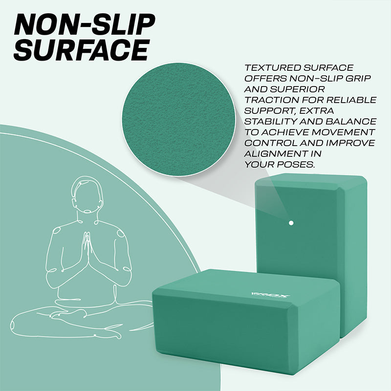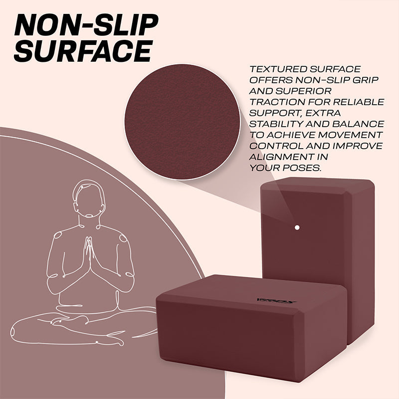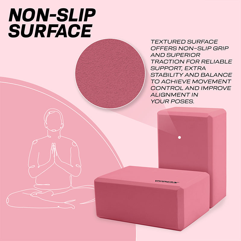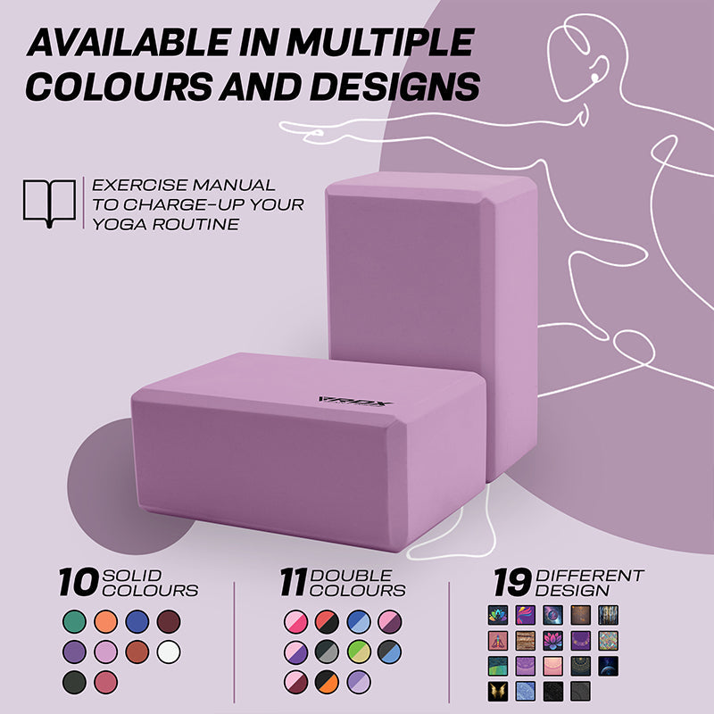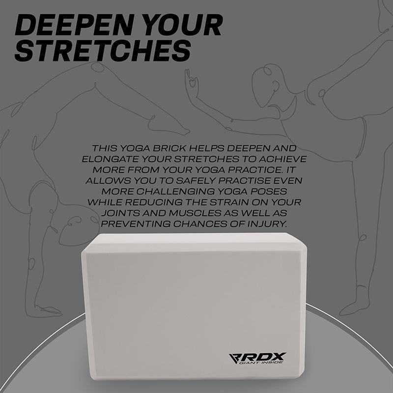 Cultivate healthy energy flow by bringing balance and alignment in your form and everyday life with the RDX EVA Foam yoga blocks. Add this optimally sized yoga block (23*15*9.8cm) to your home gym essential and yoga accessories for increased versatility in your practice. Made for beginner and intermediate yogis alike, this sturdy foam yoga block provides strong support for your bridge poses, and comfortable lift to perfect your alignment in the crescent moon stance.Lightweight and compact design facilitates block-assisted yoga practice anywhere whether it's in your room or under the shade of a giant oak tree. Sturdy, high-density foam yoga block delivers exceptional strength to help prolong your poses and holds its position even under considerable weight. It also retains shape after all sorts of compressions for long-lasting durability. Eva foam material offers a non-abrasive surface that increases comfort while you flex and stretch out during practice, or ease-into restorative poses. Use the yoga brick under your hands and feet to deepen stretches, improve flexibility and modify poses to match your difficulty level. It also serves as meditation cushion under your head and torso to relax and ensure proper alignment. The soft block is gentler on the joints and muscles during arm balances and backbends, which reduces the strain on muscles and the chances of injury. Non-slip textured surface offers superior traction for the stability and balance needed in your practice to maintain control of movement and improve alignment. Slightly bevelled edges provide a firm and easy-grip surface so you can confidently conquer even the more advanced yoga poses. Get additional help by looking up poses from the included exercise manual.Pick the colour that matches your style to energize your routine and turn functional yoga into art.