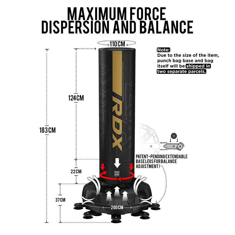 Step up your punching and kicking game with the RDX Kara free-standing punching bag! This innovative bag provides a realistic boxing experience without all the fuss of a traditional hanging bag, so you can get that satisfying workout you need. It is made with a hollow structure that rebounds back after impactful strikes and boasts advanced shock-absorption technology to ensure maximum resilience against high-impact punches and kicks. And not only that, it is also equipped with octa-truss technology that renders rock-solid stability. With our punching bag, not only will your skills soar but so will the fun you experience each time you throw a punch!