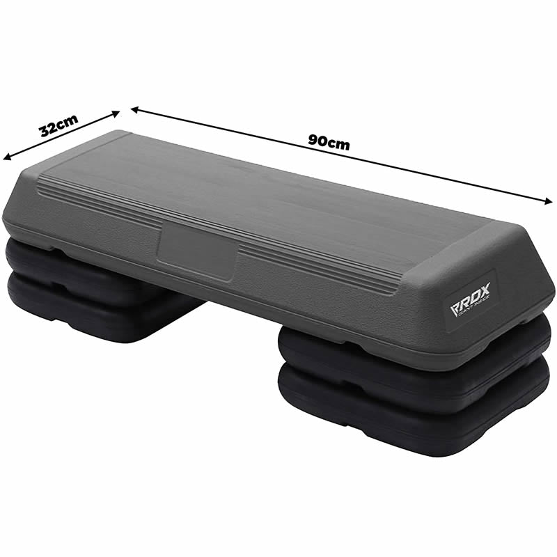 Time to snap out of your lockdown slumber and hitting the home gym with all youve got. Step onto the worlds most handy and effective home gym equipment from RDX Sports. This exercise equipment for home use is made with highly durable PE in 108cm by 41.5cm dimensions. The surface area of wide design gym step is covered with natural rubber to enhance grip and overall durability. Extends upto three levels in height at 10cm, 15cm and 20cm with easy to use stackable risers. The step gym equipment absorbs shock effectively due to the sturdy base material. The non-slip, rubber layering over the base gives the step board added grip and stability. Our compact shape and lightweight aerobic step platform can easily bear maximum weight of 350kg. Easy to assemble, simple click and lock adjustment mechanism with 8.5kg product weight to carry it anywhere anytime. Available in a striking color combination of black & red and black & grey. Get the best of each workout routine with a detailed workout manual included in the pack.