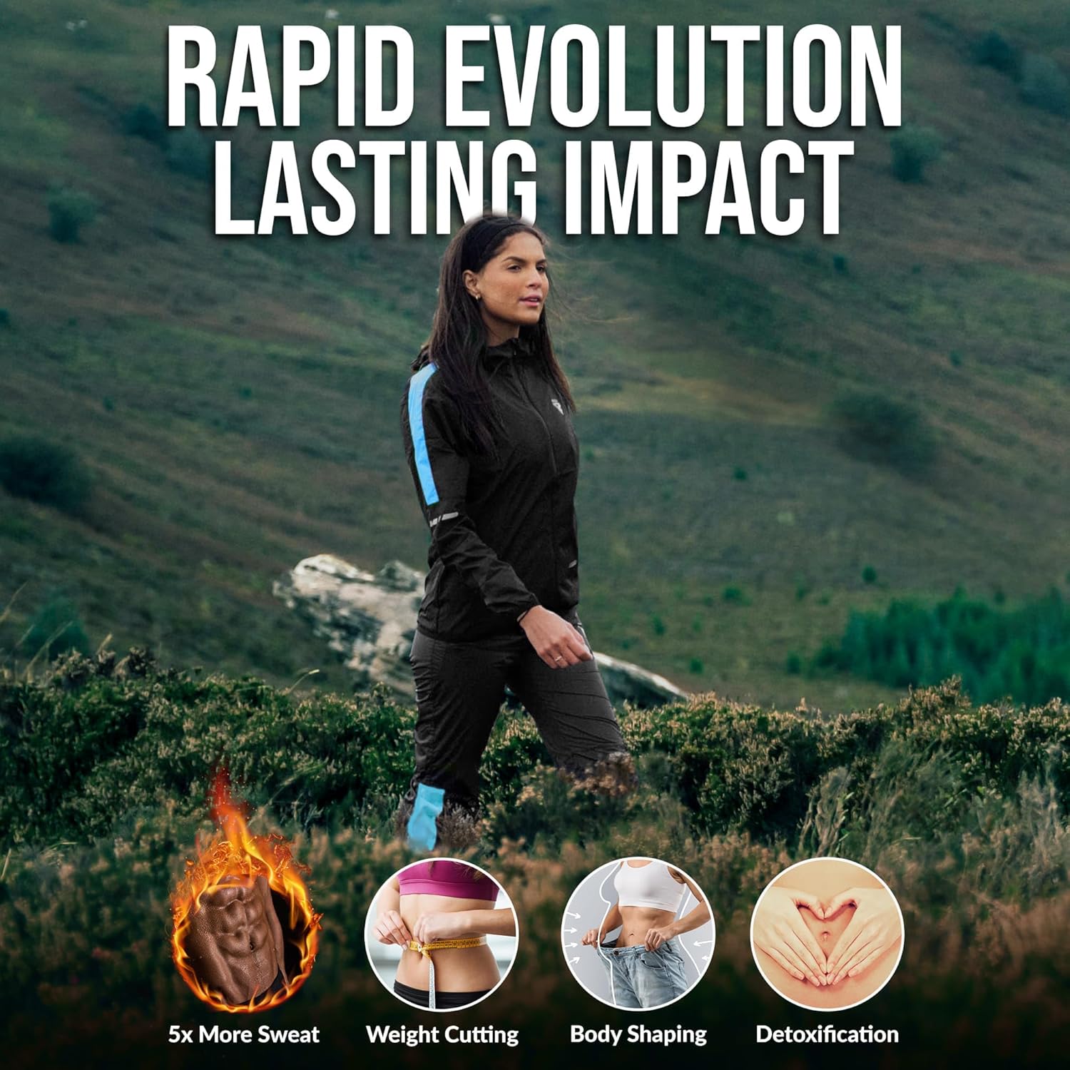 Embark on a sustainable fitness journey with the RDX H1 Sauna Suit for women. Meeting OEKO-TEX 100 and REACH standards, this eco-champion features a unique silver inner lining in Instant Sweat Fabric, a key component of Heat Suit Tech. Enjoy unrestricted movement, enhanced visibility with reflectors, and excel in various workouts. Experience eco-luxury with efficient perspiration in the advanced H1 Sauna Suit from RDX Sauna Range 2.0.
