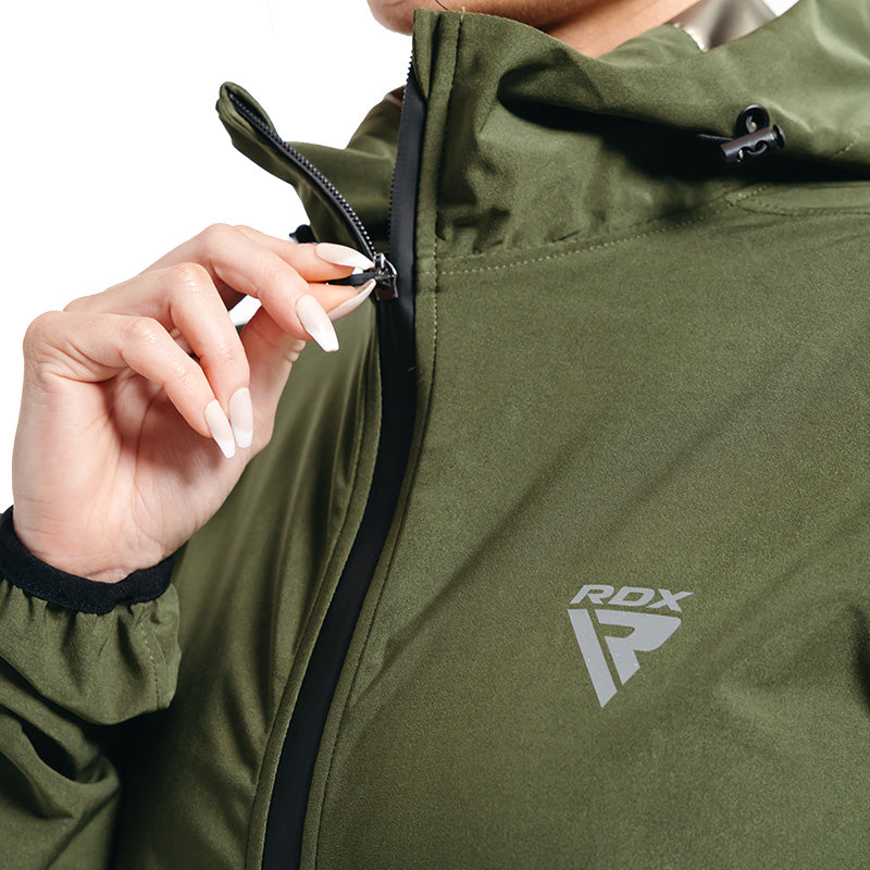 Discover the RDX H2 Sauna Suit for women an eco-conscious marvel that supercharges your workouts with five-fold sweat power. This eco-warrior boasts REACH and OEKO-TEX 100 compliance while amplifying your sweat 5x with the Heat Suit Tech's golden/blue lining. With its body-hugging design, reflective components for enhanced visibility, and versatility for all kinds of workouts, you master efficient perspiration.