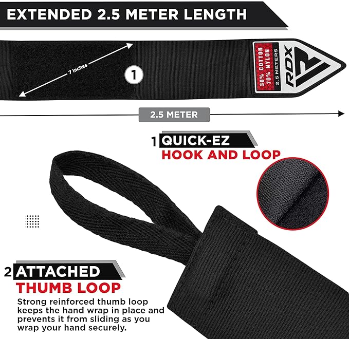 • ENHANCED BREATHABILITY AND STRENGTH Tackle sweaty sessions head-on with our groundbreaking Muay Thai hand wraps. Crafted from a dynamic blend of cotton and nylon, these kickboxing wraps provide unmatched breathability paired with exceptional durability. Their optimum thickness ensures your hands are both cool and cushioned, even during the most intense workouts. Step up your training game, immerse in comfort, and let your hands relish the luxury of freshness.