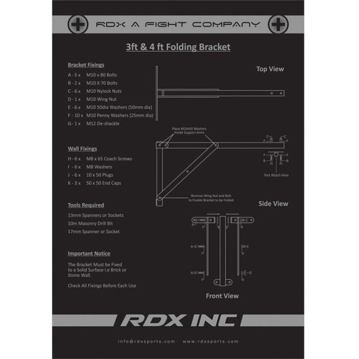 Not all wall brackets are built equally! RDX®s latest Folding Wall Bracket is ergonomically designed to utilize space efficiently, and can carry some serious weight. The 90cm extending arm can easily carry up to 250lbs, and when you're done using the heavy bag, you can fold the arm away to regain space. Strong P-Coated HG-Iron is treated with H-CR anti-rust layering for a long-lasting all-weather product.