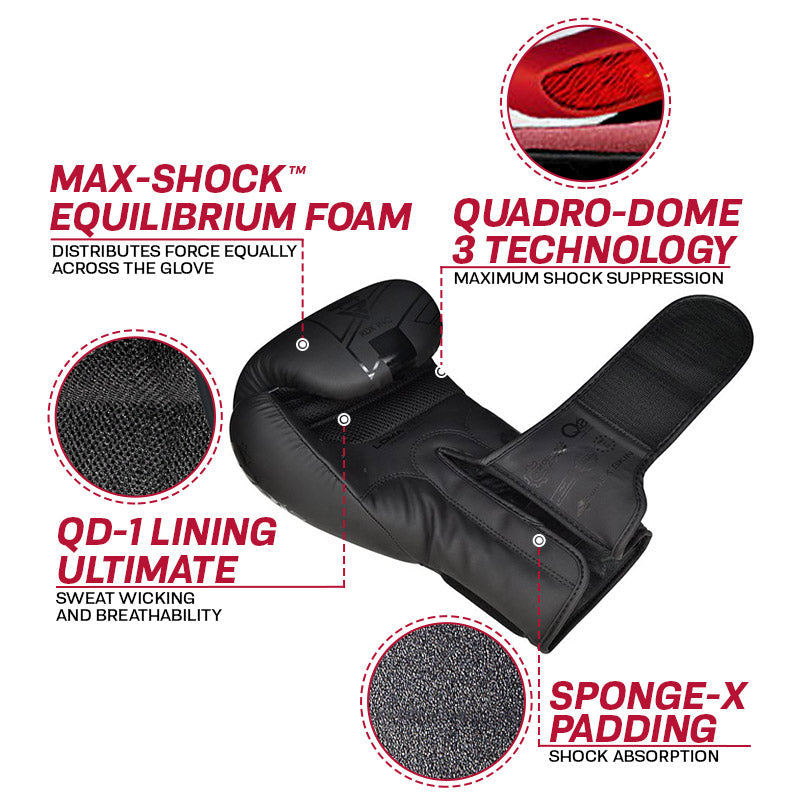 Indulge yourself in an enthralling workout session using RDX Kids boxing gloves. Engineered using Maya Hide convex skin leather, these 6oz boxing gloves are comfortable and above all delivers extreme protection to your wrists. Max-ShockTM Equilibrium FOAM distributes force equally across the glove & makes it a perfect shock absorber. Quadro Dome3 technology is used to provide enough protection to the punch while Calibrated Impact Diffusion SHEET and SpongeX PADDING help in maintaining wrist position. Loma tech technology has been introduced for the very first time to enhance the built. Intelligently placed QD 1 lining delivers ventilation and a sweat-free combat experience. Quick-EZ hook-and-loop strap brings optimum wrist alignment with the added advantage of a convenient fit.