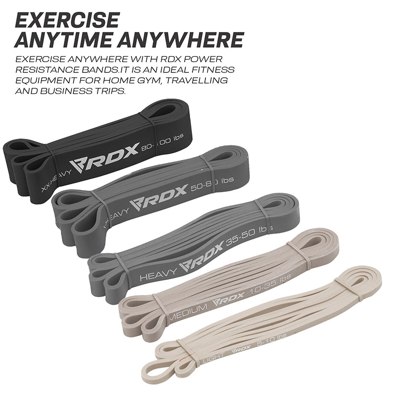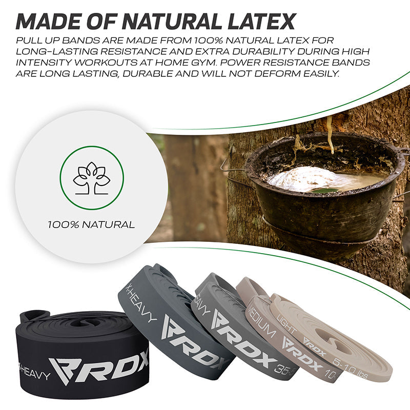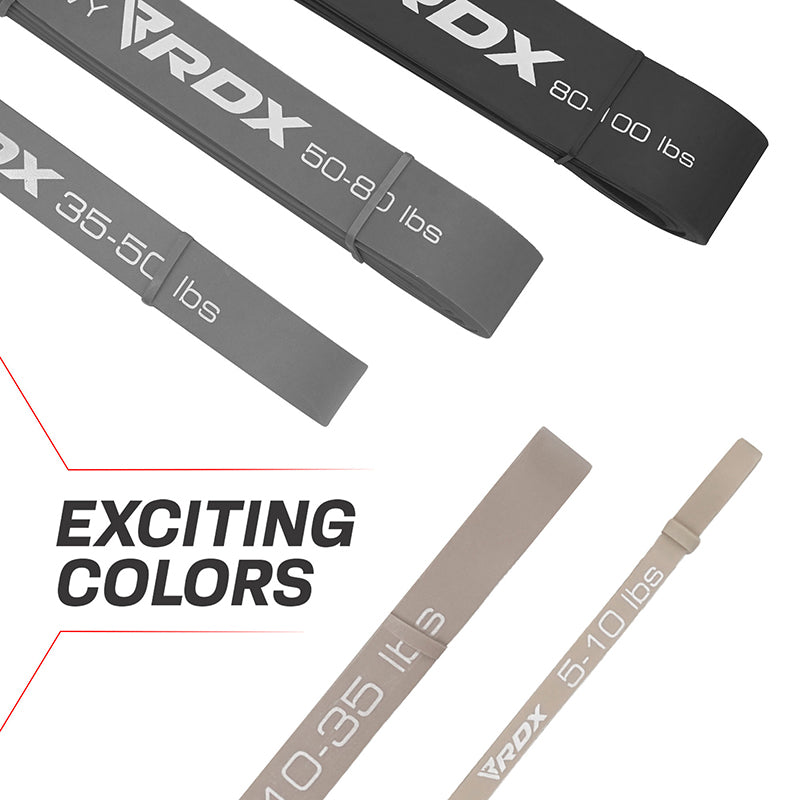 Increase the intensity of your fitness routine by integrating the RDX power resistance band into your trainings. Premium quality, non-pungent and eco-friendly, 100% natural latex resistance band set is made to last longer. Perfect for building muscle strength at home gym by adding more resistance to your dumbbell workout set and training your core. Use stretch bands to do pull-ups, ring dips & muscle ups in between your home or office routines. Also suitable for body resistance training and physical therapy to rebuild torn ligaments or muscles and best resistance band to workout arms, legs, back and glutes. The exercise bands sets features a standard band length of 2080mm and uniform thickness of 4.5 mm, but varying widths and resistances. The X-Light resistance band has a 6.4mm width & 5-10lbs strength, light resistance band has a 13mm width and 10-35lbs strength, and medium resistance band has a 22mm width and 35-50lbs strength. The heavier pull up assist bands with heavy resistance and 32 mm width & 50-80lbs strength, as well as X-Heavy resistance and 45mm width & 80-100lbs strength perfect for more intense home gym workouts. Stack up resistance bands in your squat exercises to feel the burn in your legs. Ideally sized, lightweight, anti-snap resistance bands are easy to carry and store after use in your home gym. Available in 35 bright colors.