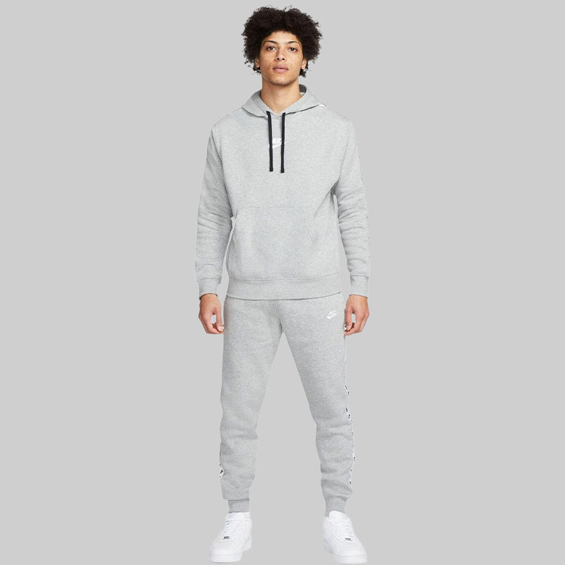 The Nike Fleece Repeat Logo Hoodie Tracksuit Set delivers comfort with bold style. Made from soft fleece, it includes a cozy pullover hoodie and matching joggers, both featuring repeating Nike logo details for a standout look. The set offers a relaxed fit, ribbed cuffs, and an adjustable waistband, making it perfect for casual wear, lounging, or light activity while keeping you warm and stylish.