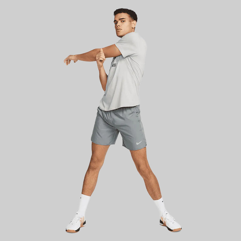 Dominate your run with the Men’s Challenger Dri-FIT Shorts, designed to provide a lightweight and distraction-free experience. These shorts feature high-performance moisture-wicking technology that pulls sweat away from your skin, keeping you dry during even the most intense training sessions. The integrated brief liner offers a locked-in, supportive feel, while the versatile 7-inch inseam and side-panel mesh provide maximum airflow and freedom of movement. A technical essential for any athlete's collection.