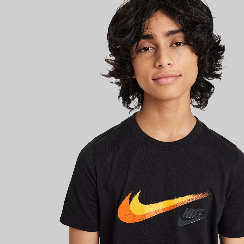 Design: Large, bold Nike Swoosh logo graphic on the front