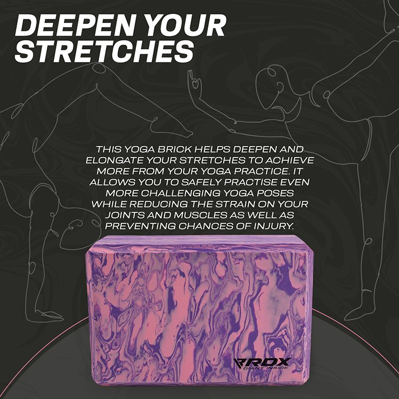 Add this optimally sized yoga block (23*15*9.8cm) to your home gym essential and yoga accessories for increased versatility in your practice. Made for beginner and intermediate yogis alike, this sturdy foam yoga block provides strong support for your bridge poses, and comfortable lift to perfect your alignment in the crescent moon stance. Add this optimally sized yoga block (23*15*9.8cm) to your home gym essential and yoga accessories for increased versatility in your practice. Cultivate healthy energy flow by bringing balance and alignment in your form and everyday life with the RDX EVA Foam Orange/black yoga blocks.Sturdy, high-density foam yoga block delivers exceptional strength to help prolong your poses and holds its position even under considerable weight. Eva foam material offers a non-abrasive surface that increases comfort while you flex and stretch out during practice, or ease-into restorative poses. Use the yoga brick under your hands and feet to deepen stretches, improve flexibility and modify poses to match your difficulty level. It also serves as meditation cushion under your head and torso to relax and ensure proper alignment. The soft block is gentler on the joints and muscles during arm balances and backbends, which reduces the strain on muscles and the chances of injury. Non-slip textured surface offers superior traction for the stability and balance needed in your practice to maintain control of movement and improve alignment. Slightly bevelled edges provide a firm and easy-grip surface so you can confidently conquer even the more advanced yoga poses. Get additional help by looking up poses from the included exercise manual. Lightweight and compact design facilitates block-assisted yoga practice anywhere whether it's in your room or under the shade of a giant oak tree. It also retains shape after all sorts of compressions for long-lasting durability.Choose the double colour yoga brick that matches your style to energize your routine and turn functional yoga into art.