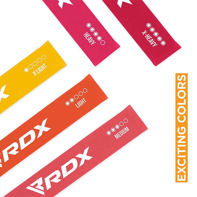 Want to rehab, strengthen the muscles or increase your agility and flexibility at home? If yes, this set of resistance loop bands by RDX is perfect for all fitness regimes. No pungent odour because of 100% natural latex material, this mini resistance band set is durable, offers high elasticity and built to last. From 5lbs to 25lbs, these bands come in 5 different resistance levels ideal for newbies and professional exercisers in a home gym. Eco-friendly Tension bands of uniform thickness improve core strength, balance training, enhance fitness and perfect for body shaping. Shape up your whole body at home while in lockdown with our super portable, form retaining, lightweight and easy to carry loop bands set, tailor-made to carry anywhere anytime. With 600mm x 50mm dimensions, these bands are longer than normal, comes in a variety of length and resistance levels. X Light is of 0.3mm thickness and 5lbs resistance. Light resistance band has 0.6mm thickness & 10lbs resistance. Medium loop resistance band has 0.9mm thickness & 15lbs resistance. Heavy resistance band has 1.2mm thickness and 20lbs resistance. While X Heavy features 1.5mm thickness and 25lbs strength. Available in 25 exciting colours with complete workout guide, exercise manual & a carry bag. The perfect fitness equipment for use in a home gym.