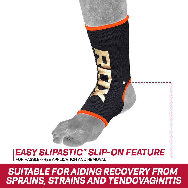 An extra strong and super stretchy ankle support for athletes. Ideal for preventing injuries and essential for Tendovaginitis or sprain recovery. This high tech ankle brace is the perfect hybrid of stretch and strength, giving boxers and MMA fighters a product that lasts and lasts, whilst always retaining its shape. A batwing design hugs the ankle, a special elastic gives enhanced support and security, and the quick slip-on feature makes it so easy to use. Ideal for slipping into your kitbag and can be machine washed.