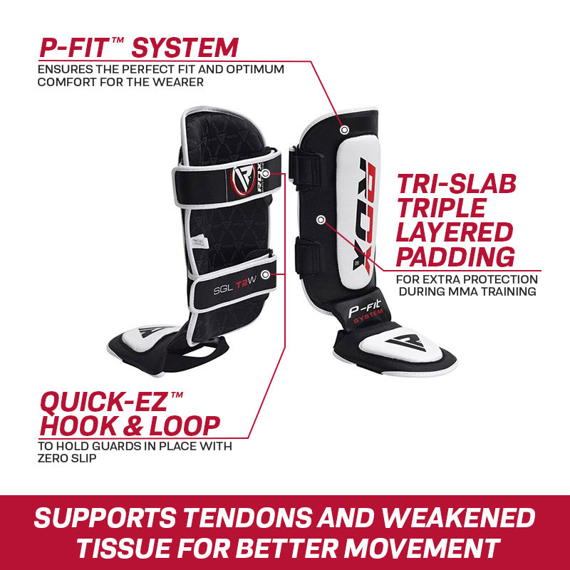 Armour up with the most effective shin guards around. Triple padded to bring you three times the protection for ruthless opponents or tough sparring sessions. Cut from the sturdiest leather and treated for durability, these leather shin pads are virtually indestructible. And featuring a high-tech gel for shock absorption, unique fit system for amazing comfort, and a secure hook & loop fastening for zero budge in the ring, you can stay focused on your enemy whilst still staying nimble on your feet. Robust yet lightweight they will never weigh you down. (SMALL & MEDIUM RECOMMENDED FOR UPTO 14 YEARS OF AGE)