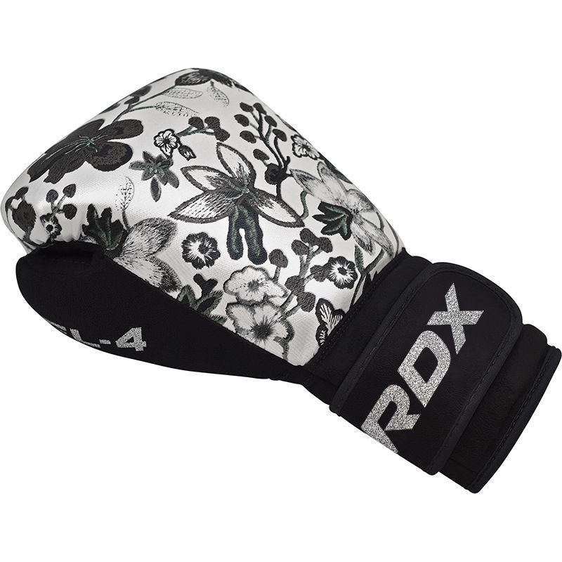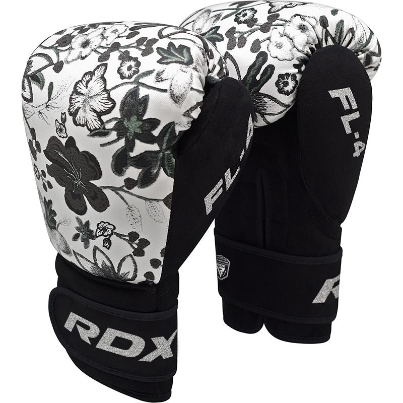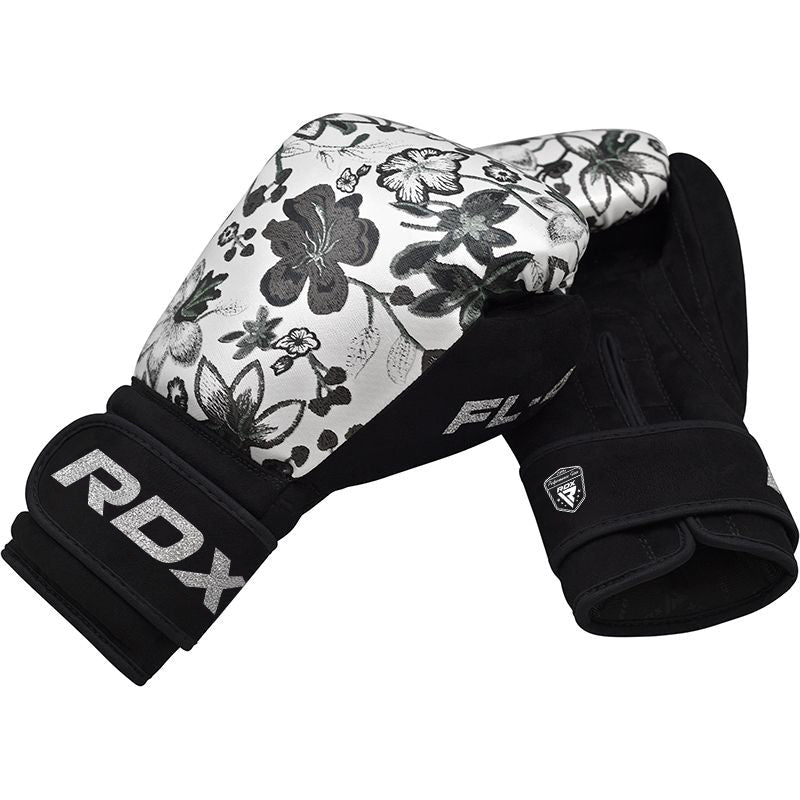 The ladies boxing gloves feature an elegant floral print that pairs well with classic RDX craftsmanship. These boxing gloves are handmade with an RDX-special Flora Skin exterior that features an anti-thumbing lock that keeps the thumb in place. More importantly, these sparring gloves are designed to fit female hands and effectively cater female bone density. The EVA-LUTION foam gel padding is super effective for shock absorption. The Dazzle Fabric interior and SSP Ventilation System work together to keep the hand dry, cool and ventilated. These womens training gloves offer unbeatable shock resistance. The suede-sheathed palm with nylon piping at the cuff provides comfortable friction-free wear that wont scuff the skin. The wide cuffs and hook-and-loop fastening, aim to deliver advanced protection for thinner wrists.(8OZ & 10OZ SIZES RECOMMENDED FOR UP TO 14 YEARS OF AGE)