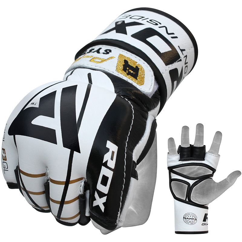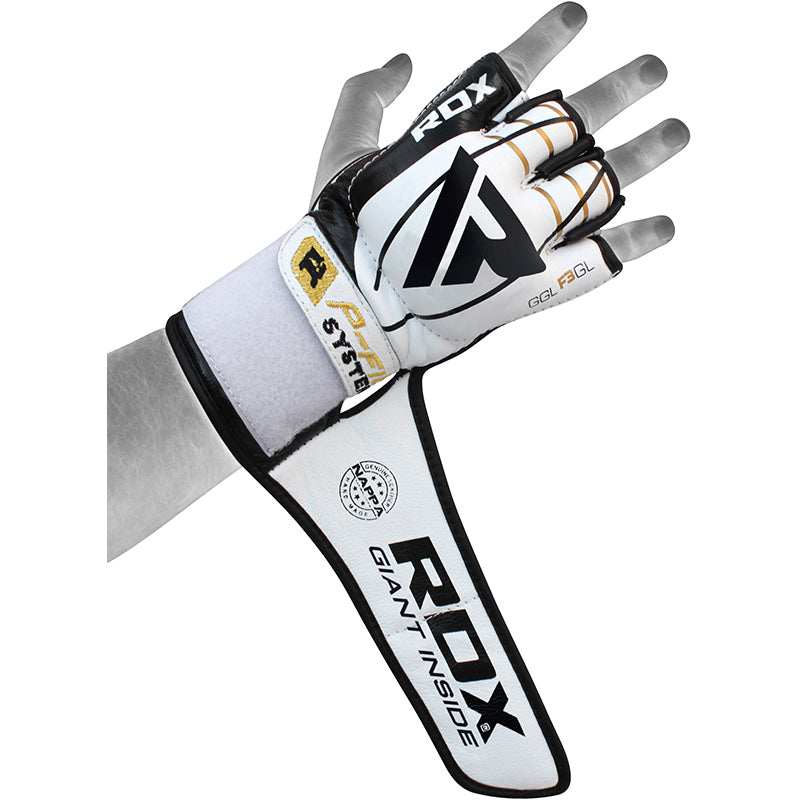 Swedish Association approved professional MMA gloves. The Swedish Mixed Martial Arts Federation is the national governing body for MMA in Sweden.' Constructed to handle punishing blows! The RDX gel leather gloves are the perfect combination of durability and protection. Made with 100% authentic leather. The shock absorbent technology contains a Shell Shock gel lining and Supremo-Shock Foam. Your knuckles and wrists will enjoy the amazing protection of the latest tech in MMA gloves. The tri-cut palm technology offers better ventilation and grip while grappling.(SMALL & MEDIUM SIZES RECOMMENDED FOR UP TO 14 YEARS OF AGE)