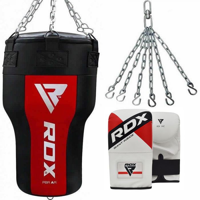 RDX Zero Impact G-Core Handmade angle shaped bag are made using high-quality built material with advanced technologies for improved performance. The set include 6 Strand HG-Steel swivel Chain Set and Maya Hide Leather bag gloves. The bag comes with the exclusive swing reduction TLF architecture at the base.