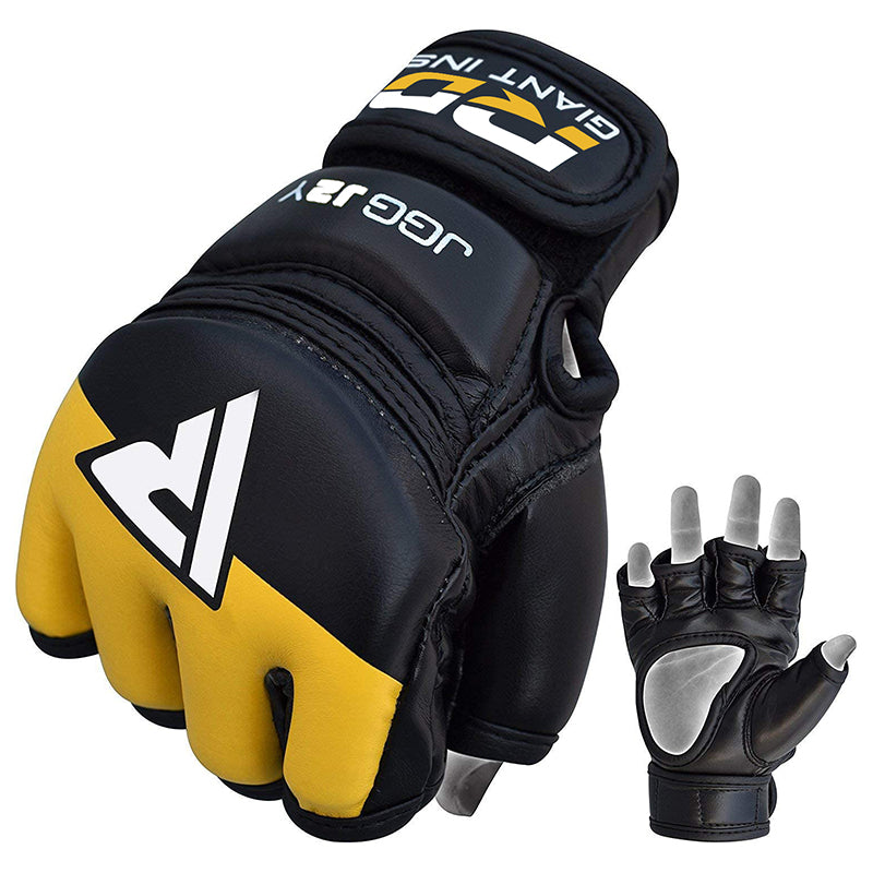 Intricately engineered for small hands, these junior grapping gloves are the ultimate protective armour for young fighters in the making. The perfect MMA bag gloves or cage gloves for kids that can harness technique and protect fragile bones all at the same time. Boasting a shock dispersing fabric makeup, maximum grip and ventilation, breathability for healthy hands, and an adjustable Hook-and-loop strap thats super easy to use, these kids MMA gloves will not let little hands down. Made from seriously tough Maya Hide leather for supreme reinforcement in the ring, even against the most ruthless opponents!