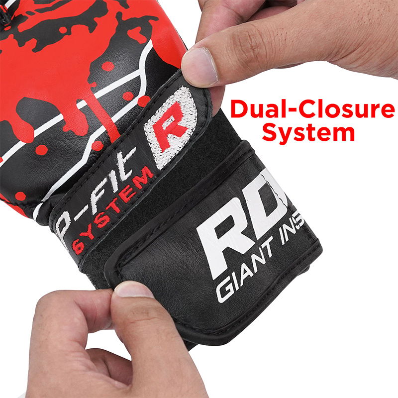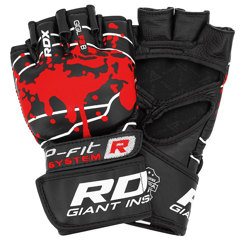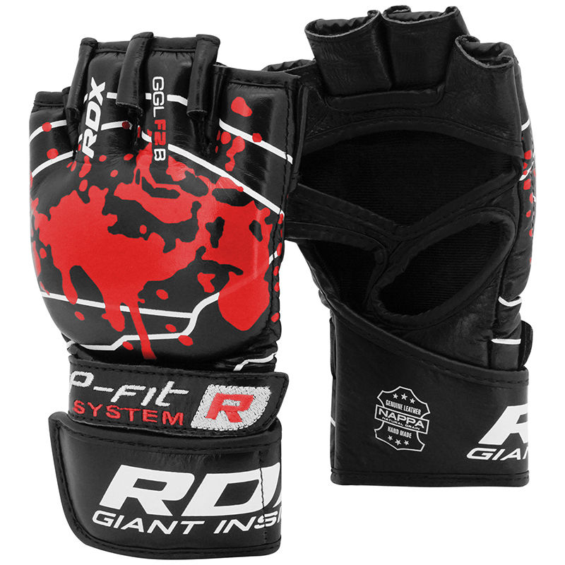 Swedish Association approved professional MMA gloves. The Swedish Mixed Martial Arts Federation is the national governing body for MMA in Sweden. Amour your hands with RDX®s full-grain leathered, triple layered 'IMT' gel integrated padded MMA gloves! Aesthetically pleasing, yet intimidating in design. Its solid constitution and technologically sound interior are cleverly assembled to absorb the heaviest of impacts without damaging the knuckles, wrists or deforming the glove. P-Fit design provides snug-fit along with Dual cross-directional strap technology that enables adjustment from both sides of the wrist, comfortably securing wrists in place, avoiding wrist-slippage or wiggle while you throw heavy leather. Open palm design with curved anatomic grip assists with punching technique and wicks away sweat and moisture from the hands to keep gloves odour free and long-lasting.(SMALL & MEDIUM SIZES RECOMMENDED FOR UP TO 14 YEARS OF AGE)