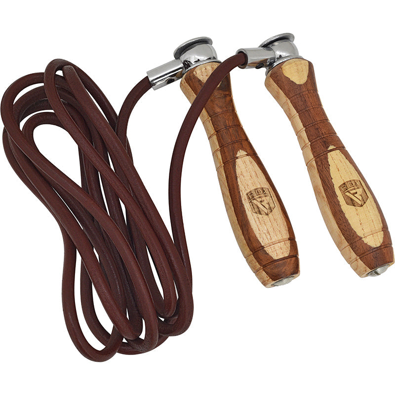 Raise your fitness game with our weighted 9ft skipping rope. Designed for boxing training, speed training and more. Changeable weights in the handles means that you can create a customised workout and made from super tough cowhide leather, this rope is built to withstand every kind of punishment. Additionally, the 90 degree perpendicular swivel ensures anti-traction skipping plus the wood designed handles offer a superior grip for the most effective training sessions.