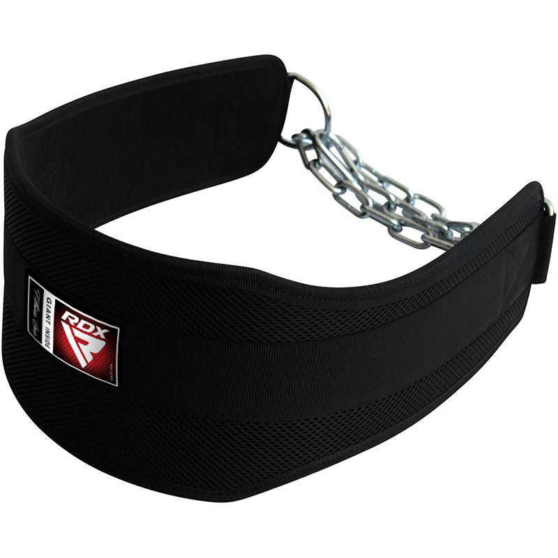 Build your resistance like a champ with our RDX® Polypro dipping belt with chain. Its an essential bodybuilding tool for anyone whos serious about strength and resistance training in the gym and it features a nylon exterior for enhanced resistance and durability, a Polypropylene webbing for added strength, steel chain and hardware that offer reinforced power, and a curved belt design for outstanding comfort for long sessions at the gym. This dipping belt not only follows the natural lines of your body to reduce stress but it will also eliminate swinging loads for a safe workout every time.