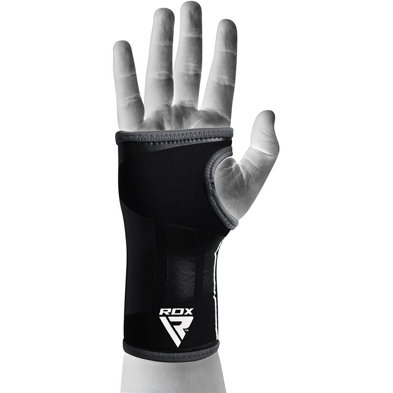 RDX exclusive wrist support with thumb hole is made of Sineo fabric for strength to provide enhanced wrist protection. The unique R-CL technology coupled with AeroTherm technology is used in the wrist support to wick away moisture and keep the skin dry. The RDX wrist support brace comes with Shell-Shock Gel padding to improve support to the wrist area. (S/M SIZES RECOMMENDED FOR UP TO 14 YEARS OF AGE)
