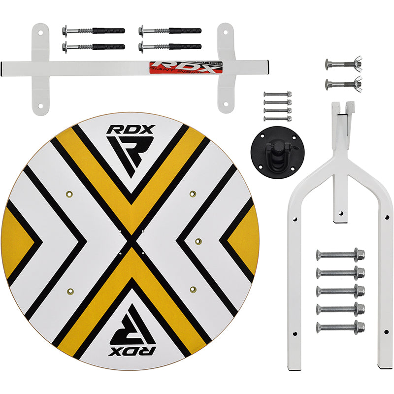 RDX Patent Pending speed ball platform set is an amazing package for fighters of all skillsets. The package include speedball hanging MDF board, HG-Steel wall bracket, leather speedball, leather gloves, Bolts and Nicoat treated swivel, skipping Rope, Hand wraps, wall plugs and Hand gripper, a hanging glove for car and a glove shaped keychain.